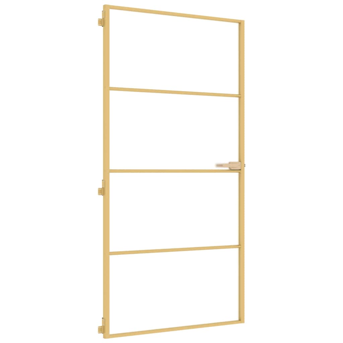 vidaXL Interior Door Slim Golden 102.5x201.5 cm Tempered Glass and Aluminium