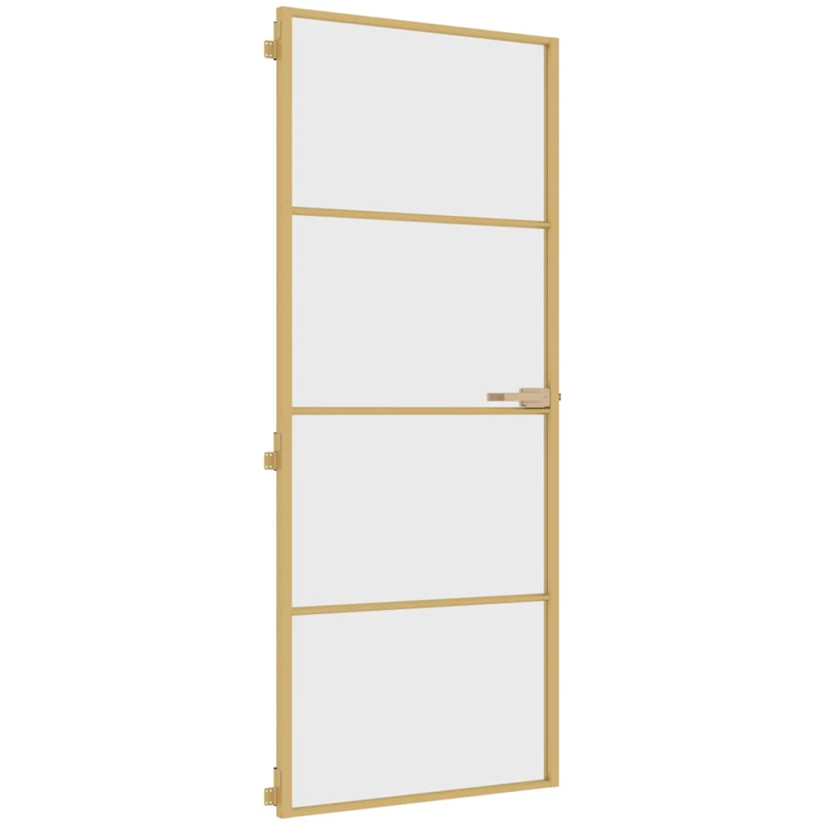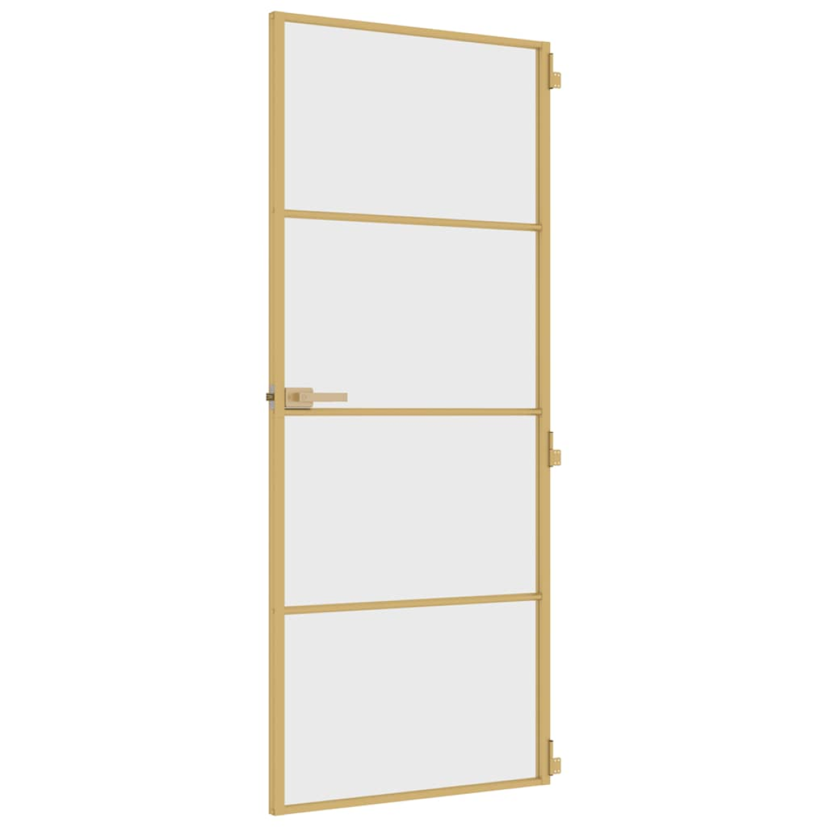 vidaXL Interior Door Slim Golden 83x201.5 cm Tempered Glass and Aluminium