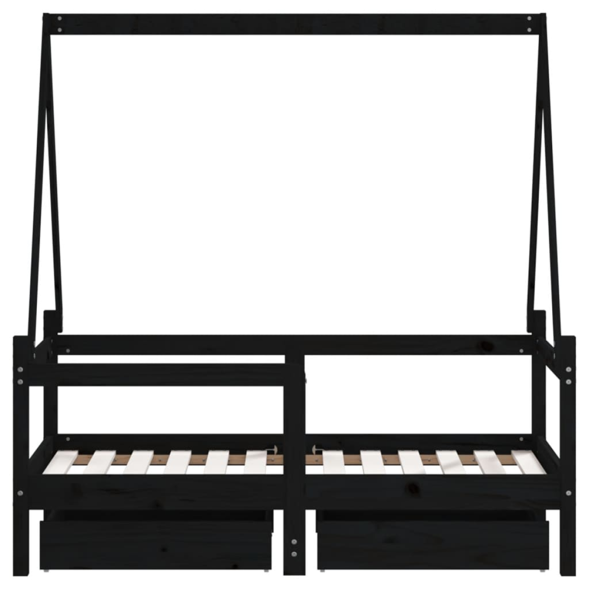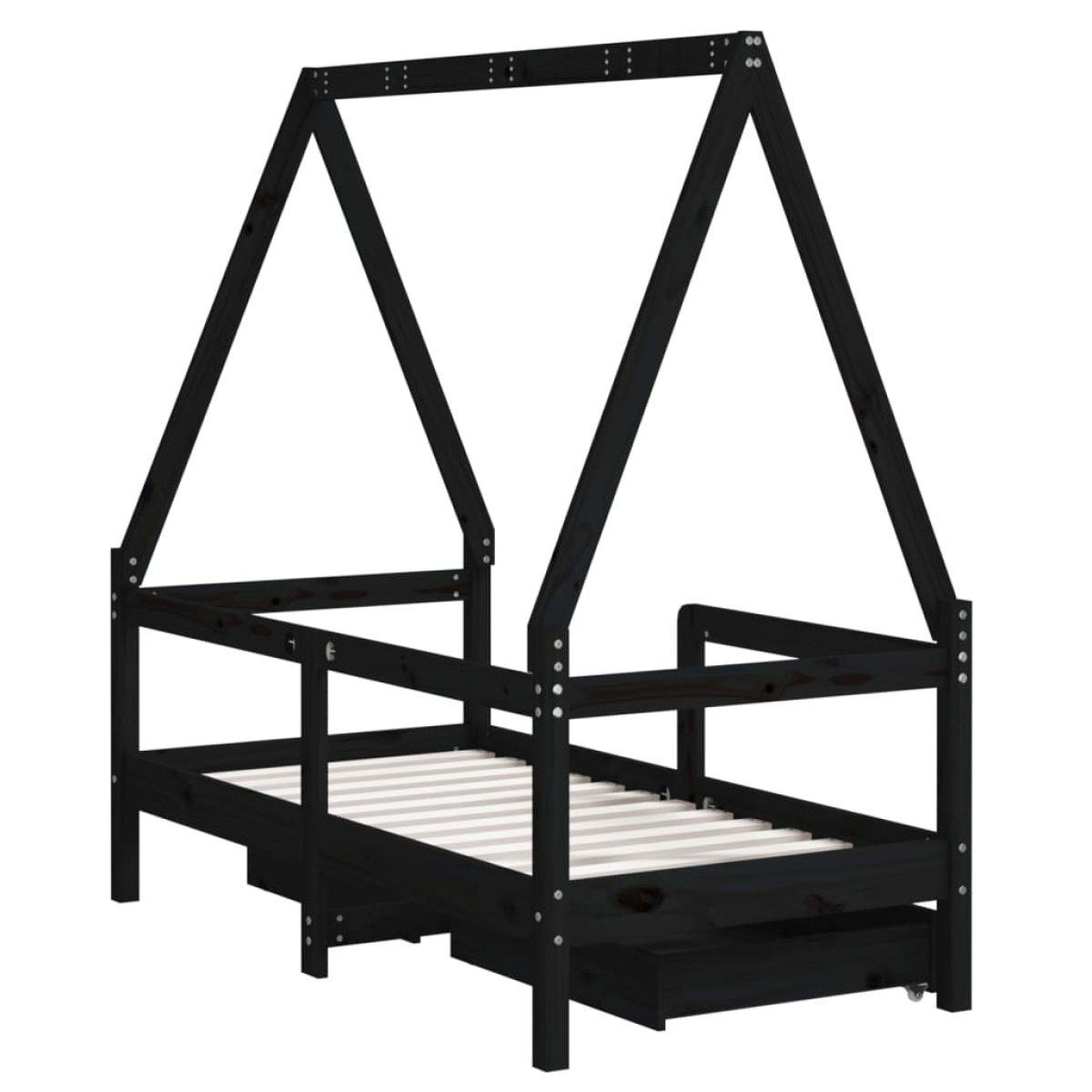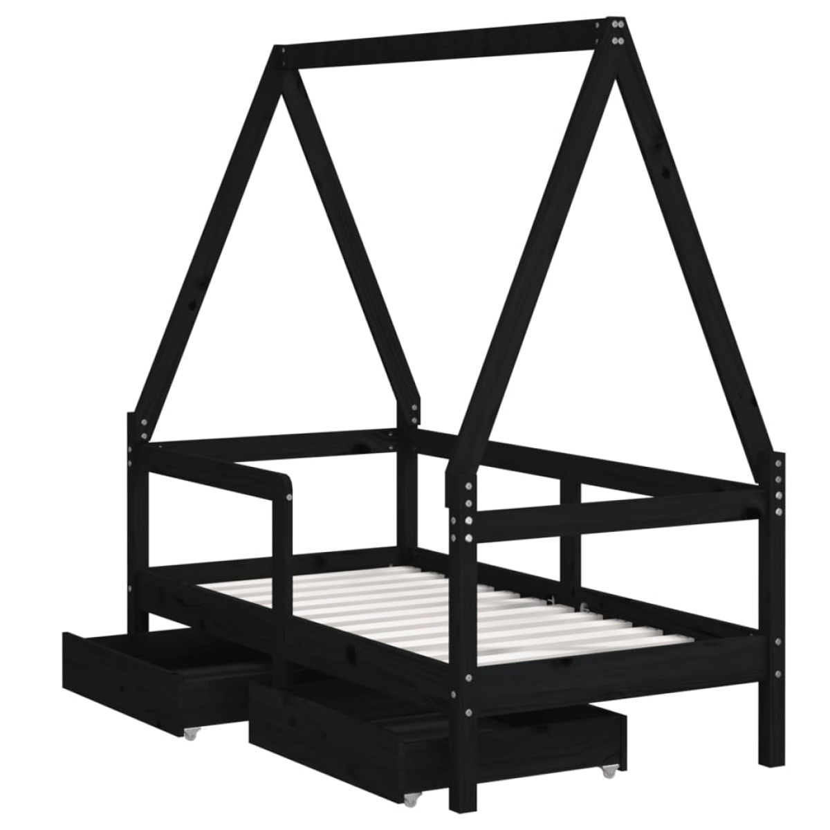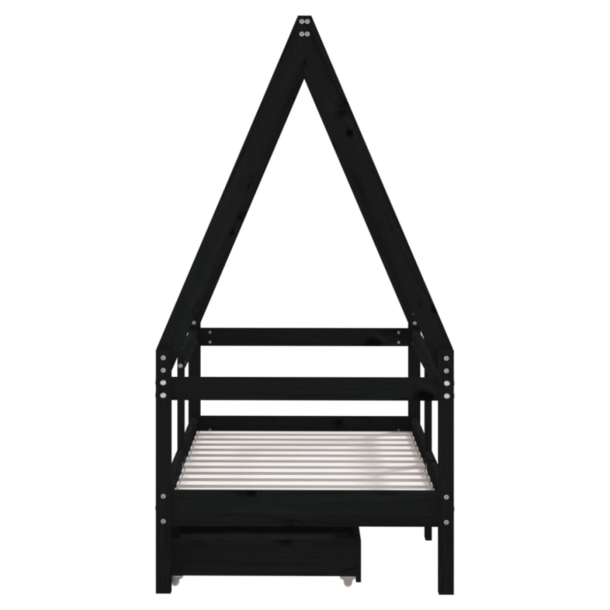 Create a fun-filled space for your little one with this fantastic wooden kids bed frame! Solid pine wood: The kids bed frame is made from solid pine wood. Solid pine wood is a beautiful natural material. Pine wood has a straight grain, and the knots give the material its signature, rustic look.Sturdy slats: The bed for kids has wooden slats for firm support, ventilation and stability.House bed design: This toddler bed is smartly designed with a house-style frame where you can hang bed curtains to create privacy for your kid.Storage drawer: The included storage drawers provide ample space for storing small toys, clothing and bedding, keeping the room tidy and clean.Considerate design: The height of the kids single bed is designed to be low to the ground, making it easy for your child to get in and out of bed.
