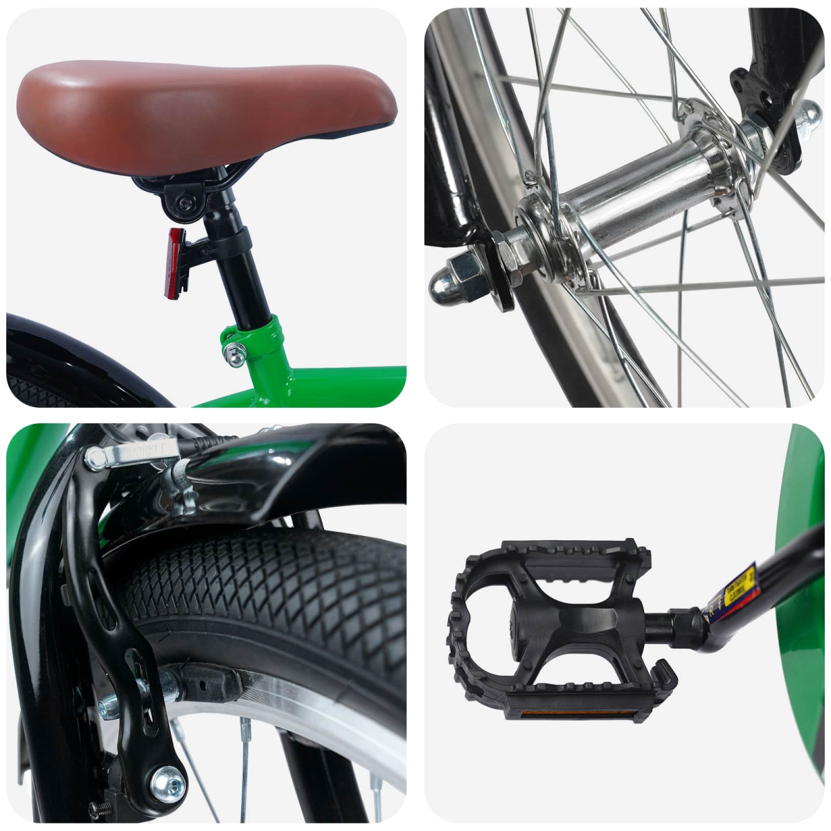 The Modern Kids Bike combines durability and style, making it an ideal choice for young riders exploring the outdoors. Its classic design blends traditional elegance with functional elements, ensuring a reliable and visually appealing ride for kids. Whether zooming through playground paths or cruising the neighborhood, this bike serves up a delightful experience with its sleek looks and robust build that's suited for children eager to ride. Durable Steel Frame: Built with a robust steel frame, this bike provides the foundational strength needed for reliable cycling. The steel material offers outstanding resilience against wear, making it perfect for youthful adventures and outdoor play. Its sturdy build ensures it withstands the demands of active use, promising longevity and consistent performance, so kids stay safe and secure. Adjustable Components: Featuring adjustable handlebars and seat, this bike grows with your child, accommodating different heights with ease. Customization helps secure a comfortable and ergonomic ride, reducing strain and maximizing riding enjoyment. From learning to ride to racing friends, adjustability ensures the bike remains a dependable companion. Single Speed Simplicity: The bike is designed with a single chainring, creating a straightforward riding experience for children. This feature minimizes the complexity of gear use, encouraging confidence in younger riders and simplifying maintenance. It's perfect for leisurely rides around the yard or park without gear distractions. Safety First Design: Equipped with a classic brake lever system, this bike offers effective stopping power crucial for safety. The intuitive design ensures kids can brake confidently, empowering them with control during their rides. Coupled with steel rims, it maintains reliable traction during sudden stops or wet conditions. Easy Maintenance and Care: Caring for this bike is simplified by its thoughtful design and resilient components. Store in a cool, dry location for optimal longevity, and occasionally check key screws and joints to keep it running smoothly. This ensures the bike remains in excellent condition, ready for its next adventure.