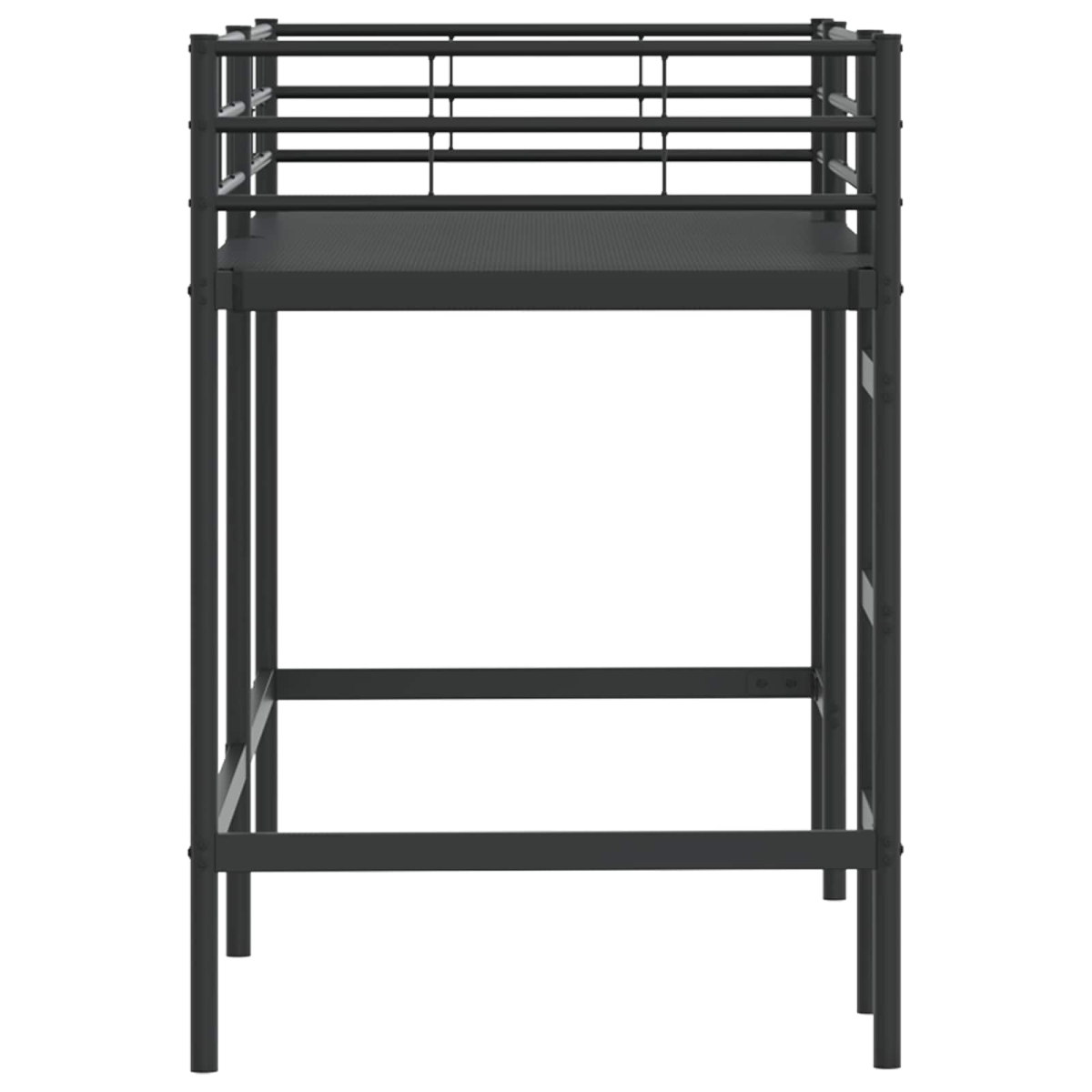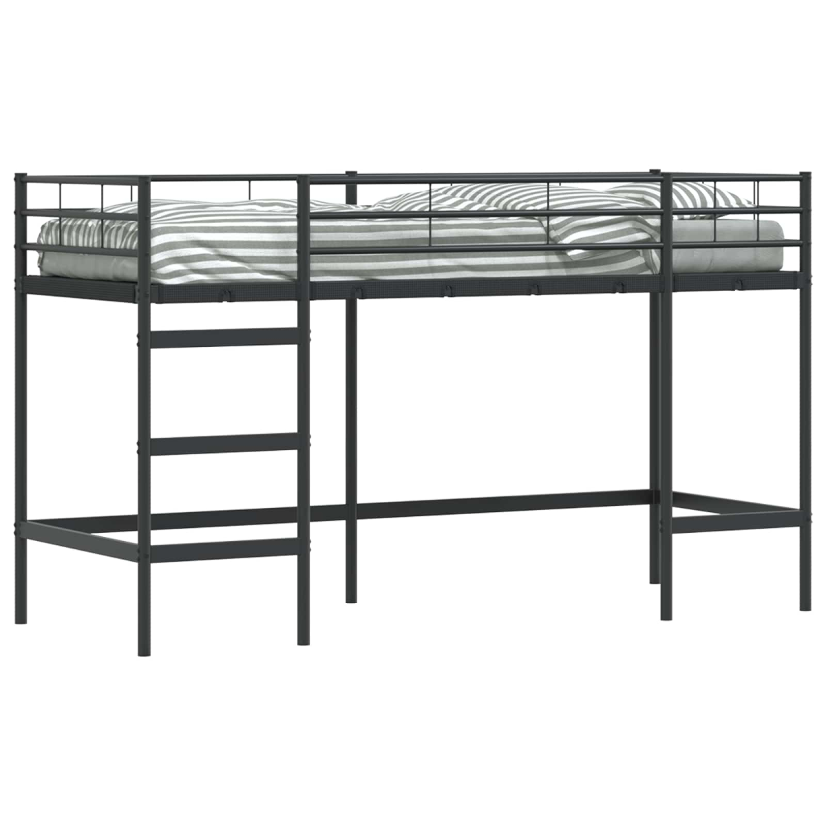 The Kids'Loft Bed Frame provides a perfect balance of style and practicality for your child's bedroom. Tailored for modern spaces, this bed frame embodies simplicity and functionality, characterized by its clean lines and minimal ornamentation. The sleek, powder-coated metal construction ensures a stable and robust resting place, while its compact design offers an innovative way to save space. Perfect for adventurous youngsters, this loft bed accommodates a comfortable sleep setting elevated above a roomy area that can serve as a study or play zone. With its smooth, matte finish, it creates a sophisticated vibe, enhancing the aesthetic of any interior. Metal Construction: The bed frame is made from metal, guaranteeing both strength and stability. Its powder-coated finish not only adds visual appeal but also provides a protective layer resistant to scratches and wear, ensuring longevity even in dynamic kids'rooms. Space Efficiency: This loft bed utilizes vertical space efficiently, creating ample room beneath. Ideal for small bedrooms, the design frees up floor space for additional furnishings or a play area, fostering a practical and tidy environment without compromising sleep quality. Safe and Sturdy: Incorporating a fixed slatted frame composed of rigid metal slats, this bunk bed assures safety and support. Rigid frames are known for being affordable but offer limited flexibility, making them perfect for maintaining structural integrity during active use. Modern Style: With its plain, matte black color and minimalist design, the loft bed complements contemporary décors seamlessly. Smooth to the touch with a rectangular silhouette, it brings an element of modernity and simplicity that suits any bedroom theme. Care and Maintenance: Low maintenance is key, as the frame requires simple cleaning with a damp cloth to maintain its elegance. Avoid dragging objects across its surface to preserve the fine finish, ensuring it remains a staple piece in your child's room.