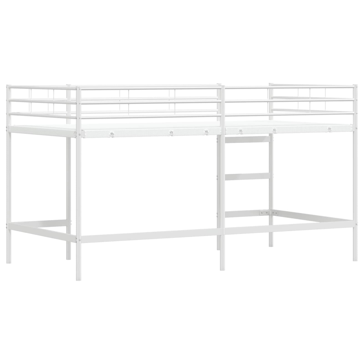 The Kids'Loft Bed Frame provides a perfect balance of style and practicality for your child's bedroom. Tailored for modern spaces, this bed frame embodies simplicity and functionality, characterized by its clean lines and minimal ornamentation. The sleek, powder-coated metal construction ensures a stable and robust resting place, while its compact design offers an innovative way to save space. Perfect for adventurous youngsters, this loft bed accommodates a comfortable sleep setting elevated above a roomy area that can serve as a study or play zone. With its smooth, matte finish, it creates a sophisticated vibe, enhancing the aesthetic of any interior. Metal Construction: The bed frame is made from metal, guaranteeing both strength and stability. Its powder-coated finish not only adds visual appeal but also provides a protective layer resistant to scratches and wear, ensuring longevity even in dynamic kids'rooms. Space Efficiency: This loft bed utilizes vertical space efficiently, creating ample room beneath. Ideal for small bedrooms, the design frees up floor space for additional furnishings or a play area, fostering a practical and tidy environment without compromising sleep quality. Safe and Sturdy: Incorporating a fixed slatted frame composed of rigid metal slats, this bunk bed assures safety and support. Rigid frames are known for being affordable but offer limited flexibility, making them perfect for maintaining structural integrity during active use. Modern Style: With its plain, matte black color and minimalist design, the loft bed complements contemporary décors seamlessly. Smooth to the touch with a rectangular silhouette, it brings an element of modernity and simplicity that suits any bedroom theme. Care and Maintenance: Low maintenance is key, as the frame requires simple cleaning with a damp cloth to maintain its elegance. Avoid dragging objects across its surface to preserve the fine finish, ensuring it remains a staple piece in your child's room.