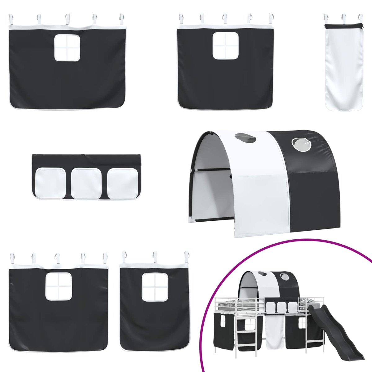 The Kids'Loft Bed Frame with Curtains, Arch, and Slide is designed to combine fun with functionality, creating a delightful sleep space that young ones will love. Crafted for modern homes, this rectangular bunk bed frame features a sleek and stylish aesthetic that seamlessly fits into any bedroom or children's room. The use of durable materials, coupled with a playful slide and customizable drapes, provides an engaging environment for both rest and play. Its black and blue color scheme adds a cool and contemporary vibe to any living space, making it both a practical and exciting addition to the household. Robust Materials: This loft bed is crafted from steel, providing a strong and stable structure that supports the lofted sleeping area safely. The use of metal ensures a durable frame that withstands the energetic activities of children. Included Components: Equipped with manual curtains for added privacy, this bed features a platform slatted frame that offers ample support for the mattress. The mesh curtains, complemented by a unique archway design, allow for fun and creative interactions. Child-Centric Features: This bed includes a slide for playful moments, which engages children and promotes an active imagination. The headboard is metal, mounted to the wall, enhancing space efficiency and providing a streamlined look. Versatile Uses: Designed for indoor use, this bed is ideal for children's rooms, with its modern style fitting a variety of contemporary themes. Whether used for sleeping, play, or study, it adapts to every child's needs. Care &Maintenance: Easy to maintain, the metal parts of the frame should be cleaned with a damp cloth, then dried to preserve its matte finish. Avoid harsh chemicals to keep the bed looking pristine for years.