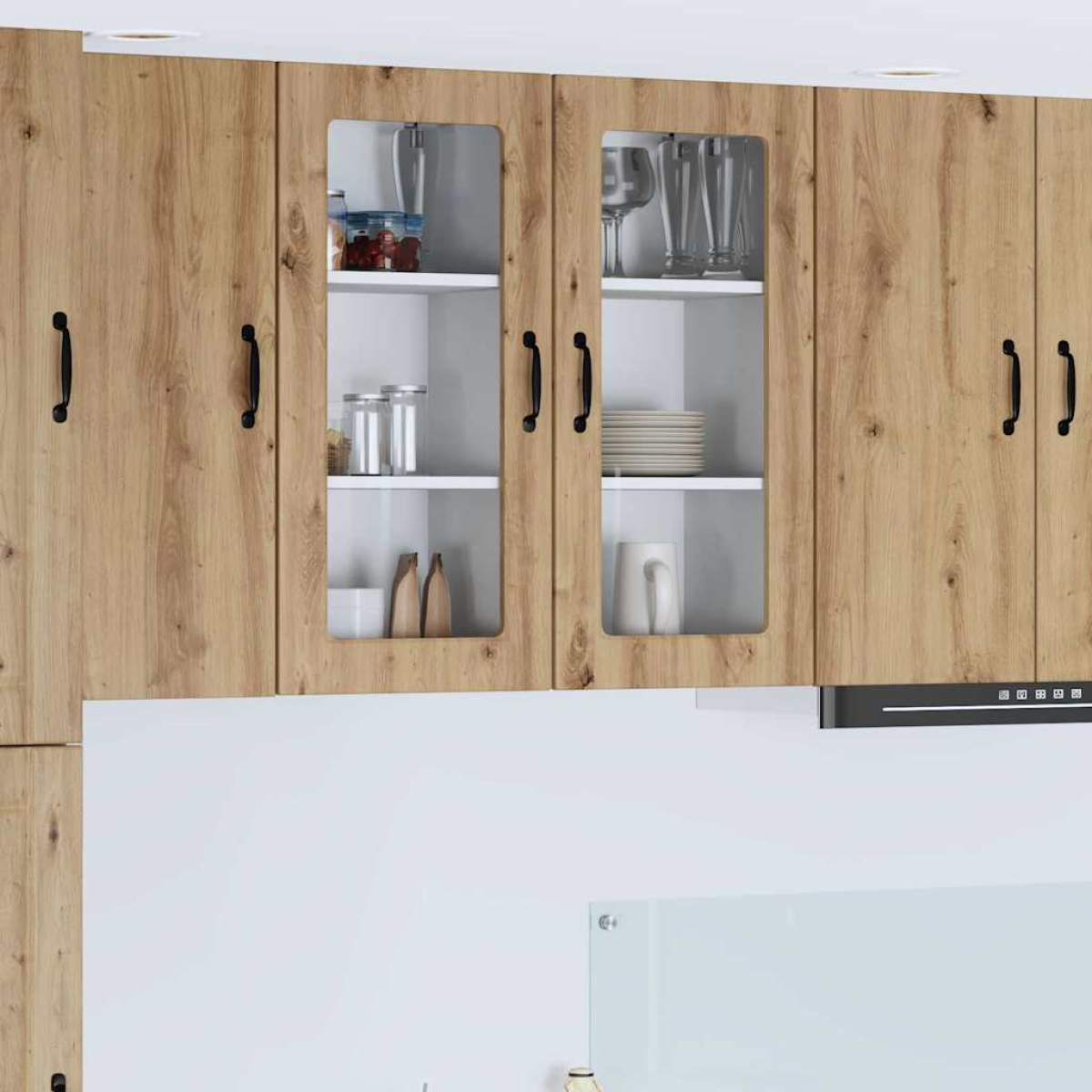 The Wooden Kitchen Wall Cabinet perfectly combines modern aesthetics with practicality in your kitchen space. Designed to elevate both functionality and style, it features a sophisticated silhouette characterized by clean lines and minimal ornamentation. This wall-mounted cabinet is ideal for organizing and storing various kitchen items, providing a convenient storage solution while enhancing the overall appearance of your culinary environment. Material: Made from high-quality engineered wood, this cabinet offers a reliable and attractive solution for kitchen storage. The material is selected for its ability to withstand daily wear and tear, assuring long-term usage and minimal maintenance. It's an ideal choice for those seeking both appearance and durability, ensuring the cabinet remains an integral part of the kitchen for years to come. Shelf Design: Features board shelves that provide a simple yet efficient storage option. These shelves are constructed from engineered wood and are adaptable, making it easy to organize kitchen essentials such as dishes, spices, or cookware. The clear and straightforward shelving layout enhances accessibility, avoiding clutter and promoting an orderly kitchen environment. Hinge Doors: Equipped with sleek hinge doors that enhance the modern design of the cabinet. These doors not only allow for smooth functionality but also provide a sleek facade that complements contemporary kitchens. The inclusion of black bar handles offers a stylish contrast, making them as much a fashion statement as a practical component. Mounted Configuration: Designed with a wall-mounted setup, this cabinet makes excellent use of vertical space, freeing up valuable countertop area for ease of movement and preparation tasks. The cabinet design facilitates a streamlined and organized kitchen setting, contributing to a clutter-free environment. Care Instructions: Maintaining the cabinet is straightforward; simply wipe it down with a damp cloth to remove daily dust and spills. There's no need for harsh chemicals, which means keeping the cabinet clean is quick and hassle-free. Regular care keeps it looking fresh and new, ensuring it remains an essential part of the kitchen decor.