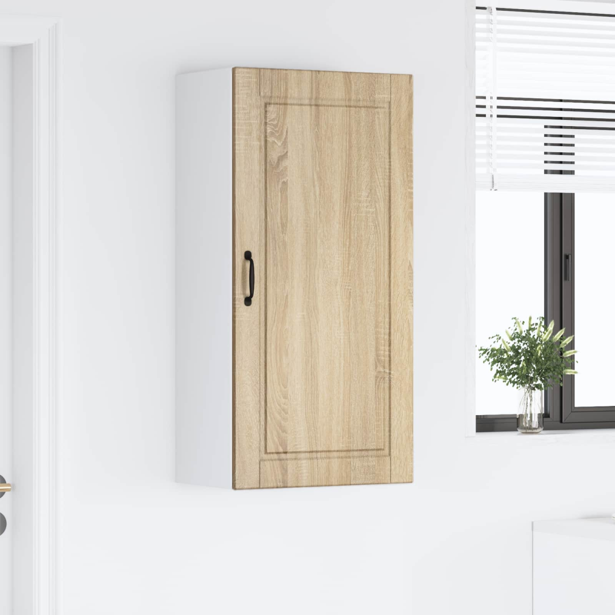 A wooden kitchen cabinet designed with a modern flair, this cabinet offers a sleek, contemporary edge ideal for contemporary kitchens. It's engineered wood composition ensures resilience and functionality, making it suitable for indoor use. The cabinet adds elegance to any kitchen space with its clean lines and minimal ornamentation. It's crafted to cater to both utility and style, providing ample storage with its thoughtfully designed compartments and shelves. Whether you're storing dishes or pantry items, it seamlessly blends with modern kitchen decor, elevating the ambiance and efficiency of your cooking space. Superior Engineered Wood: This kitchen cabinet is crafted from engineered wood, offering both durability and aesthetic appeal. It is an excellent choice for those seeking a robust and long-lasting storage solution. Its construction ensures stability, making it a reliable fixture in your kitchen for storing various essentials safely. Comprehensive Storage Solution: Designed with ample compartments and shelves, it provides extensive storage options for kitchen essentials, from condiments to cookware, keeping your space organized. Its wall-mounted feature allows you to make the most of vertical space while maintaining an uncluttered kitchen up top. Functional Features: The cabinet's practical design elements include spacious shelving, allowing easy access and visibility of stored items. It caters to the need for organization, labeling, and efficient use of pantry space, which enhances daily kitchen activities. Ideal for Indoor Use: Specifically designed for indoor kitchen environments, this cabinet is perfectly suited for homes that value aesthetic consistency. Its sleek design complements modern kitchen decor while offering practicality that matches your lifestyle. Simple Care and Maintenance: The cabinet requires straightforward care with its easy-clean surface. Simply wipe with a damp cloth to maintain its pristine condition, ensuring that daily upkeep fits seamlessly into your routine while prolonging its life and appearance.