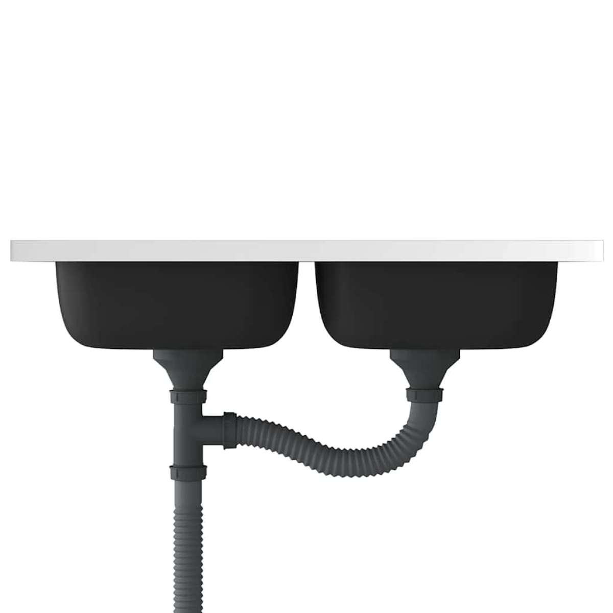This kitchen sink with double basins and a drainer set is an ideal addition to your existing kitchen decor. Durable material: This kitchen sink is made of stainless steel, making it heat resistant and resistant to scratches and impacts.Easy to clean: Thanks to the sink's smooth surface design, it is easy to clean and requires less maintenance.Space-saving: This kitchen sink can be placed on a cabinet, the basin also features a side drainer, providing additional space for your dishes.Reversible design: This sink is reversible and can be installed on either the left or right side of the basin for versatile configuration.Practical design: The faucet can be installed in either hole, allowing you to choose the most convenient option based on your setup. Good to know:The delivery only included a kitchen sink; the cabinet and the drain strainer are not included.The drainer is assembled at the time of delivery, and you need to disassemble it and then assemble it.