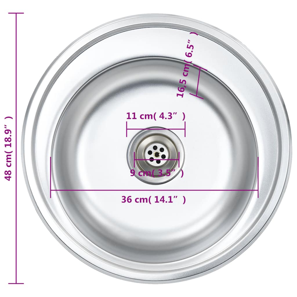 - Sink dimensions (without trap): 48 x 16 cm (Diameter x H)