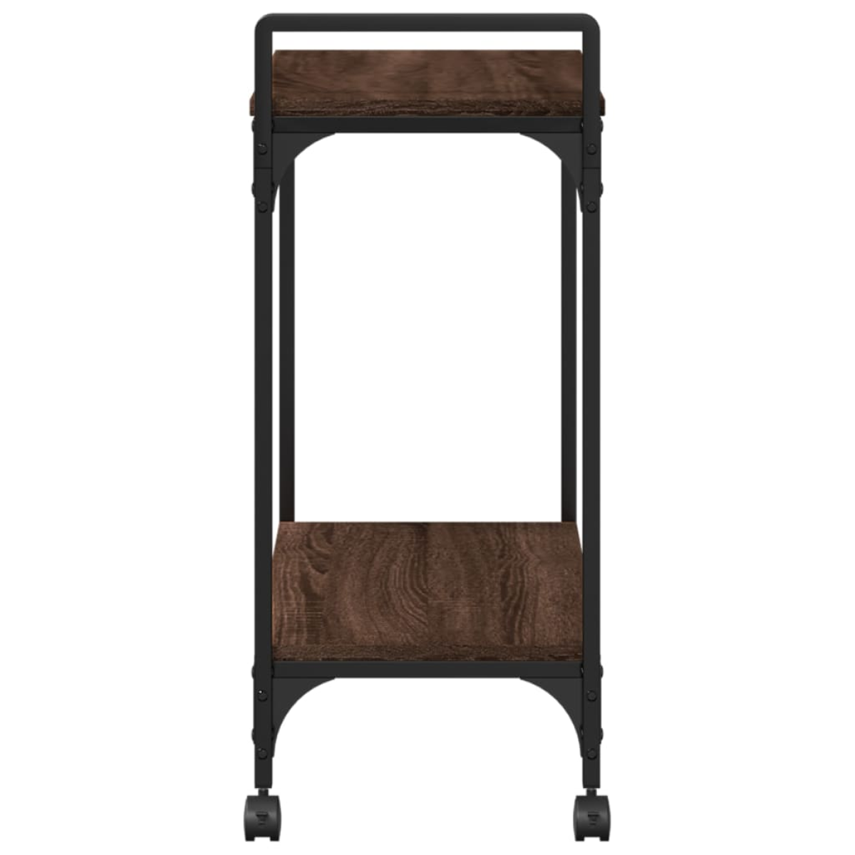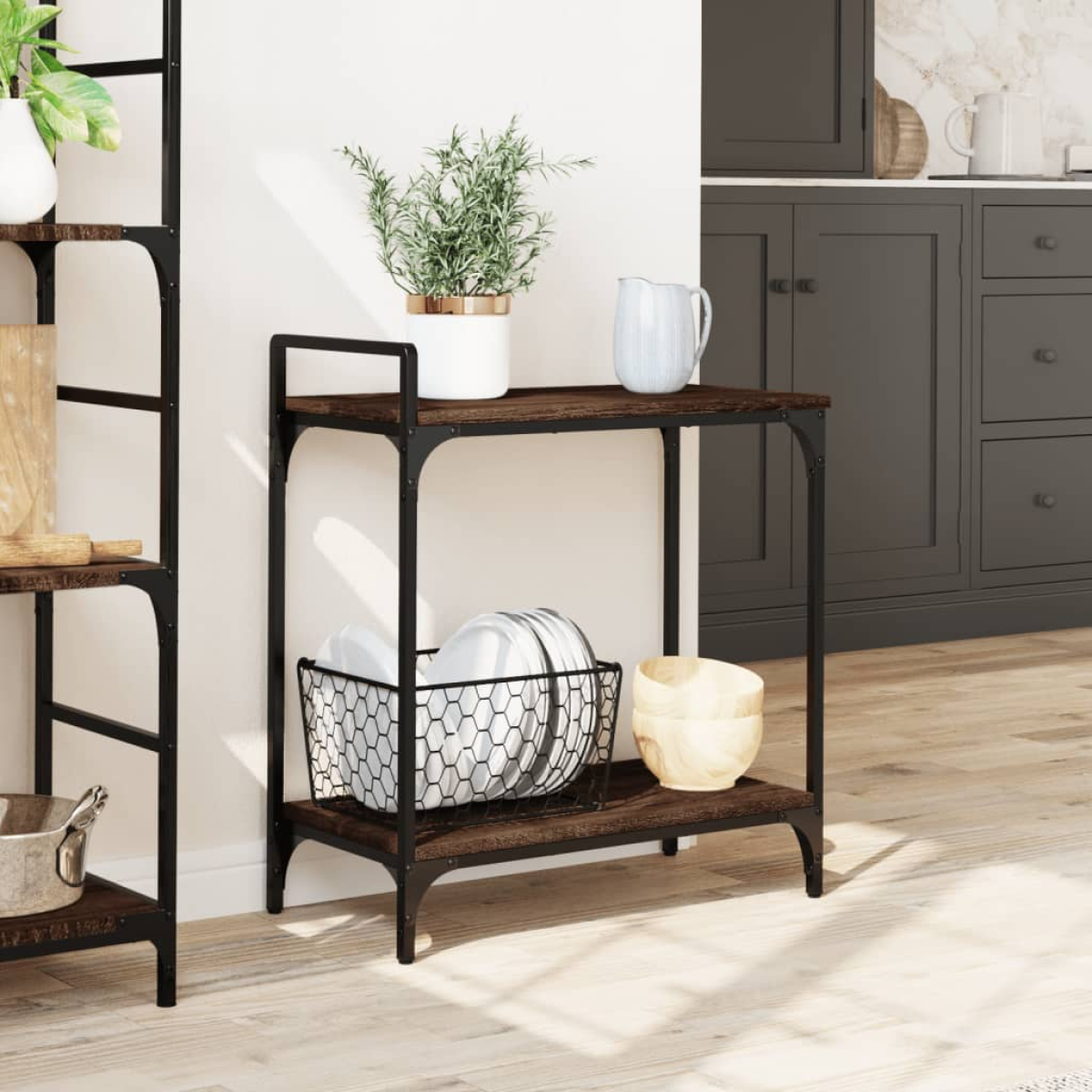 Create a distinctive and vintage touch and add more storage space to your kitchen with this kitchen trolley! Durable material: The engineered wood is of exceptional quality with smooth surface and also features strength, stability and resistance to moisture. The steel frame ensures sturdiness and stability. Ample storage space: This vegetable trolley offers plenty of storage space to keep food, bowls, plates, recipes and other kitchen utensils within reach. Easy to move: This food trolley has 4 wheels and 2 of them are lockable, making it move flexibly and park stably at any time. Wide applications: This organiser trolley can be placed in the kitchen, living room, bathroom, study, and other places. You can use it to place daily items, spices, toiletries, books, and other things to improve the cleanliness of your home. Flexible installation: This kitchen storage trolley can be used in two ways. You can place it on the floor with adjustable feet for stability on uneven surfaces or attach the wheels for easy movement. Warning:To prevent it from tipping over, this product must be used with the provided wall attachment device.