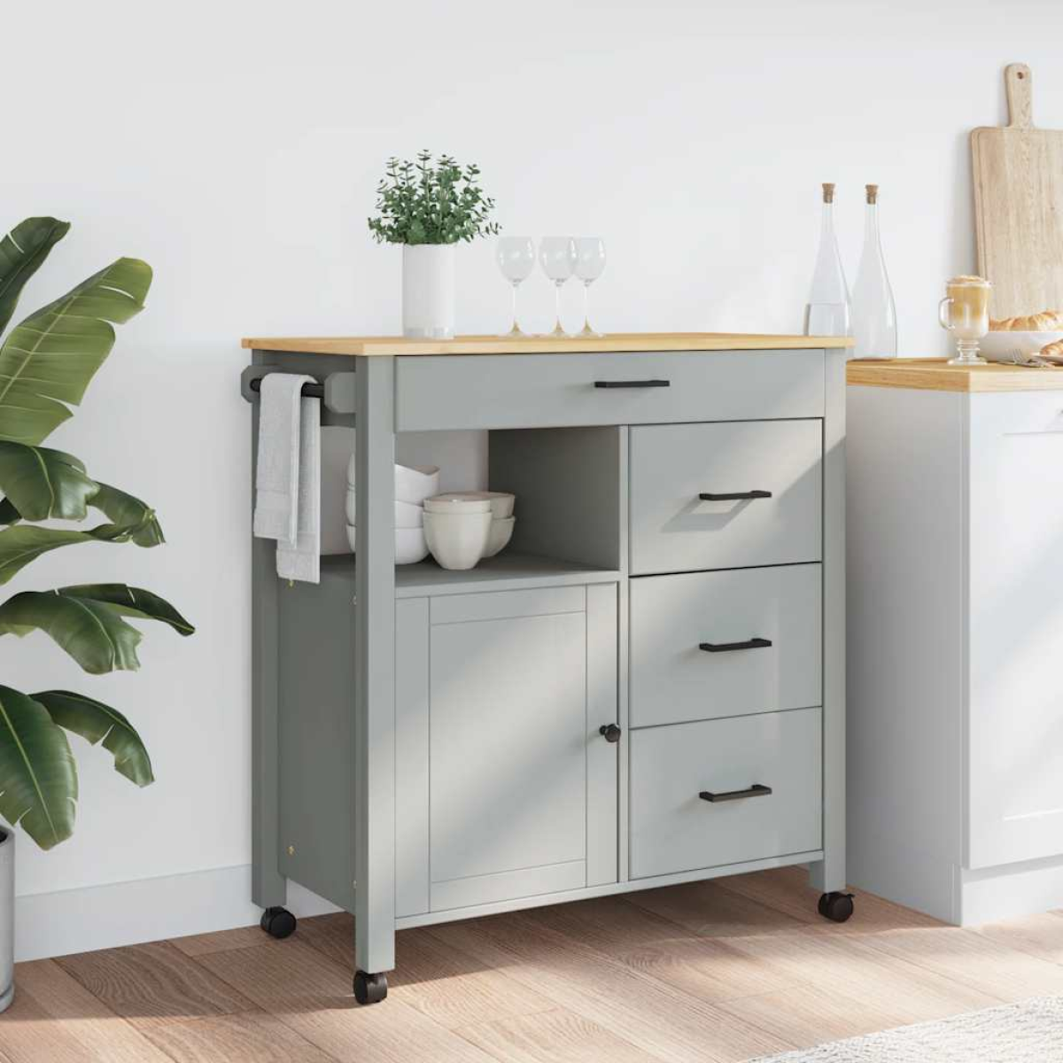 Create a distinctive and vintage touch and add more storage space to your kitchen with this wooden kitchen trolley! Durable material: Solid pine wood is a beautiful natural material. Pine wood has a straight grain, and the knots give the material its signature, rustic look. Made of solid pine wood, this kitchen storage trolley is durable and sturdy. Ample storage space: This vegetable trolley is designed with a door and 4 drawers, which offer ample storage space to place kitchen utensils. And the wooden hanger and metal hooks on the side can keep your things at hand. Easy to move: This food trolley has 4 wheels and 2 of them are lockable, making it move flexibly and park stably at any time. Wide applications: This organiser trolley can be placed in the kitchen, living room, bathroom, study, and other places. You can use it to place daily items, spices, toiletries, books, and other things to improve the cleanliness of your home.