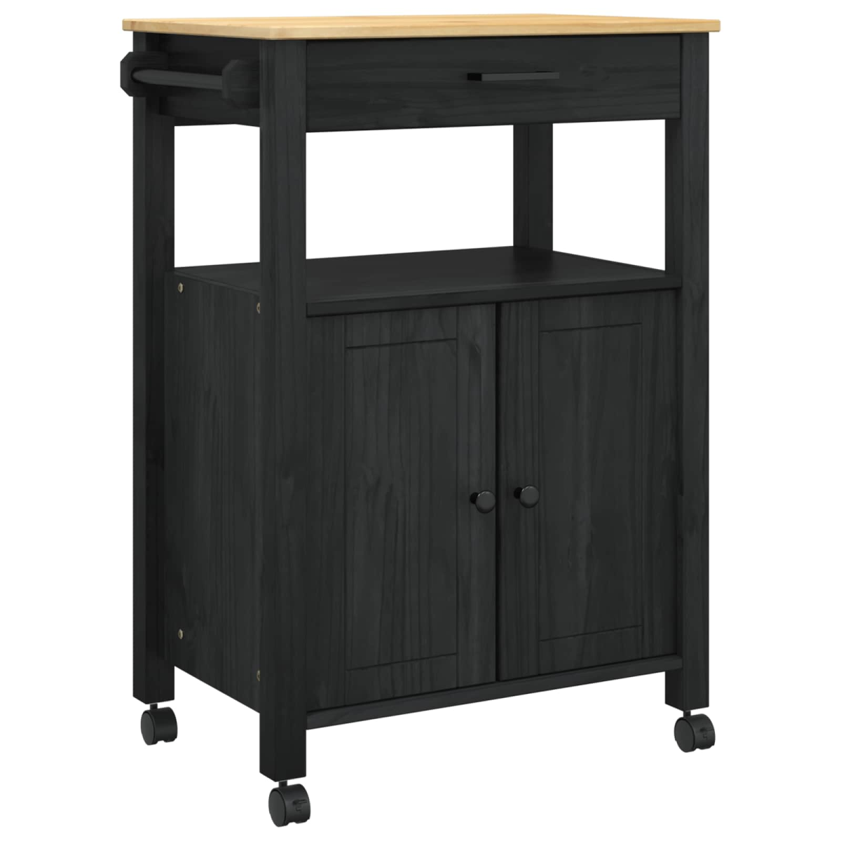 vidaXL Kitchen Trolley MONZA Black 60 x 40 x 88.5 cm Solid Pine Wood