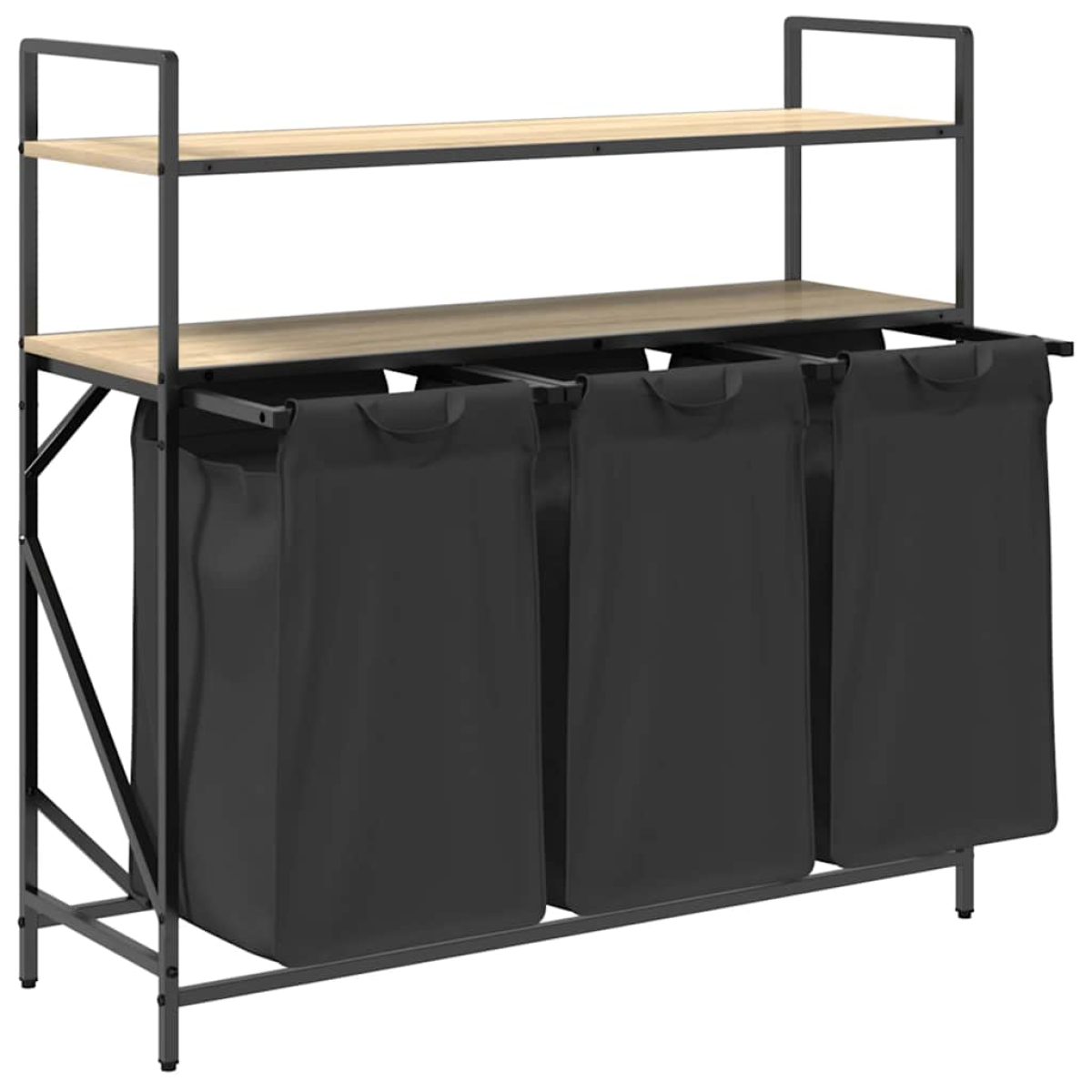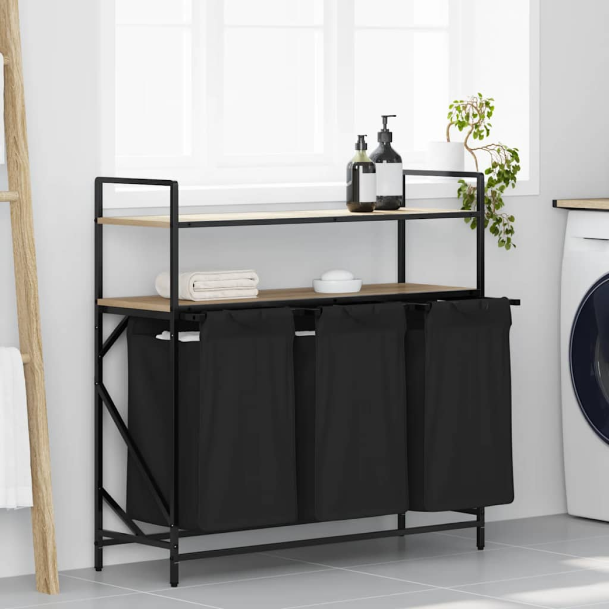 vidaXL Laundry Basket 3 Compartments with Shelves Sonoma Oak