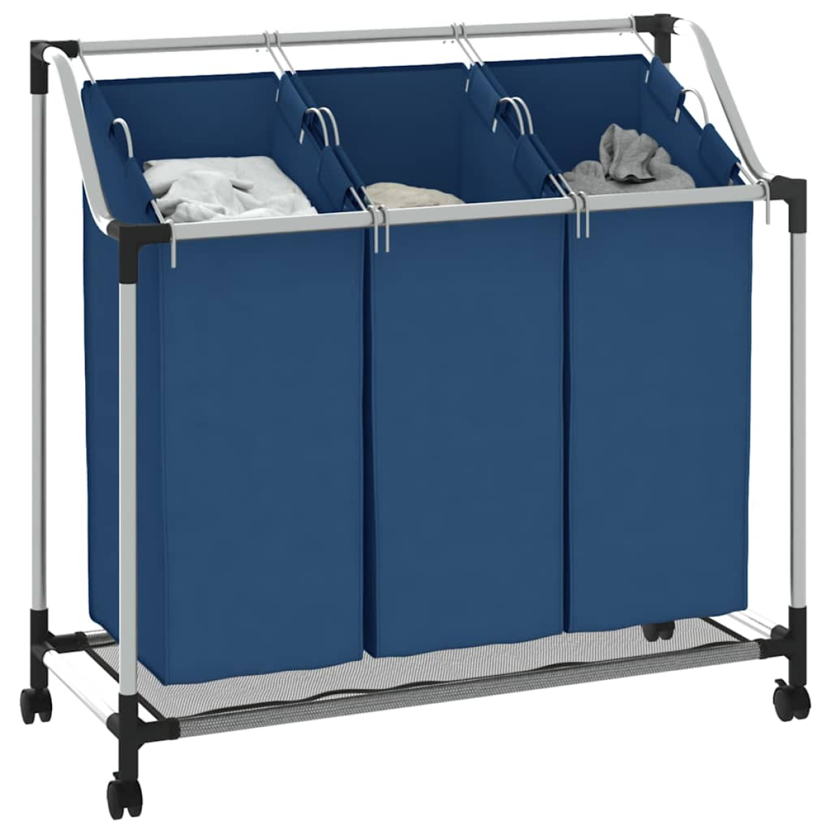 vidaXL Laundry Sorter with 3 Bags Blue Steel