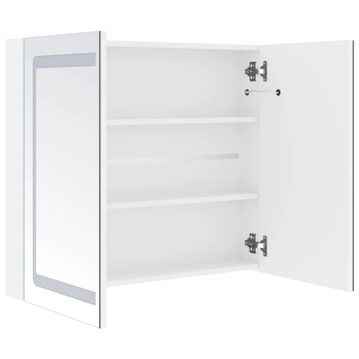 Introduce an aesthetically pleasing into your bathroom with our LED vanity mirror cabinet! Our wall mirrored cabinet with LED adds a touch of contemporary style and soft illuminating light to any room! It is made of quality MDF board with melamine finish, ensuring the long term use. With energy efficient LED strip, you can see yourself in the truest light for makeup application, grooming and skin care and it can illuminate your room, your face and your smile. You can easily switch on/off the light with the bottom button. Additionally, two doors reveal 3 shelves inside the cabinet, which offer ample bathroom storage space. They will easily accommodate your essential toiletries and bath items such as soaps, shampoo, toothpaste, etc. Stylish and functional, this cabinet will surely make your room design originally exceptional! The cabinet is easy to install onto the wall. Note: The product has a USB connector, but the certified 5V USB power source is not included.