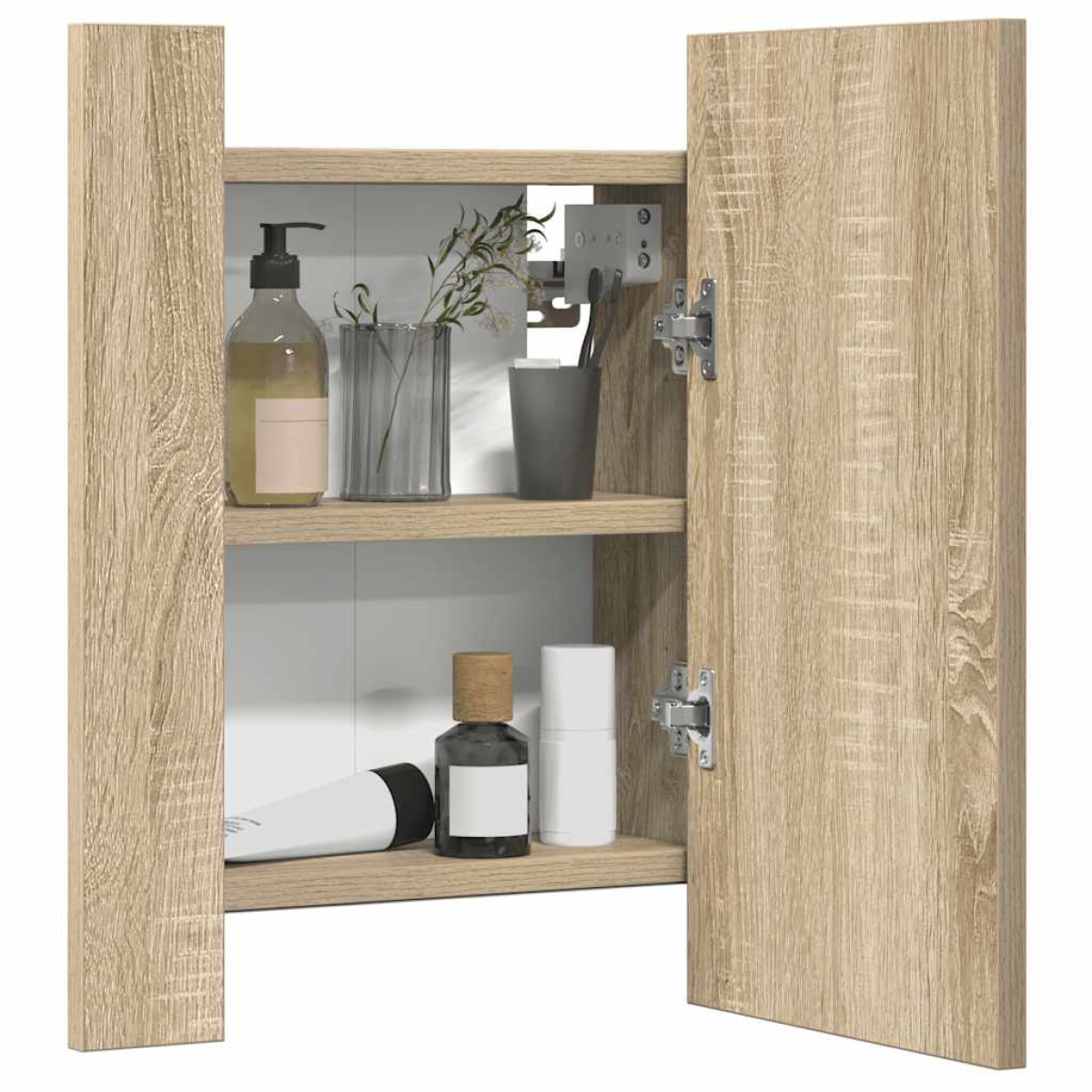 Add a touch of aesthetically pleasing into your bathroom with this LED mirror cabinet, which adds a contemporary style to any room! The bathroom cabinet features an RGB light, so the colour of the LED can be changed. The two shelves inside the cabinet offer additional bathroom storage. They will easily accommodate your essential toiletries and bath items such as soaps, shampoo, toothpaste, etc. Additionally, it is easy to clean with a damp cloth. Stylish and functional, this cabinet is surely meant to make your room design authentic and exceptional! Note:The mirror is made of lightweight and quality acrylic material, which is safer and stronger than glass. You need to peel the protective film before using the mirror.The product has a USB connector, but the certified 5V USB power source is not included.