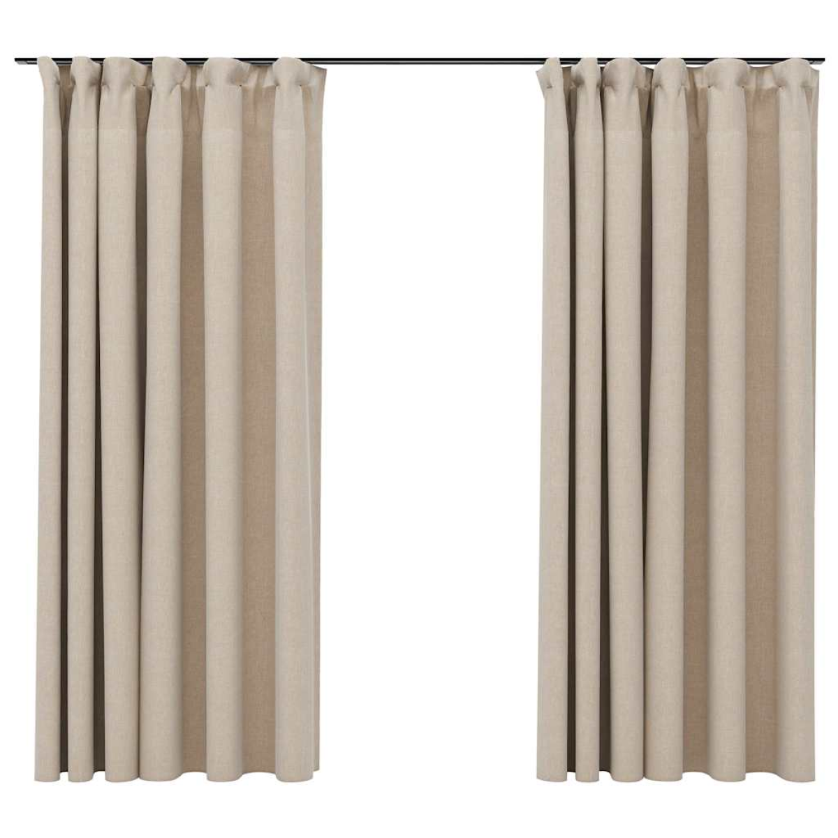 vidaXL Linen-Look Blackout Curtains with Hooks 2 pcs Beige 140x175 cm