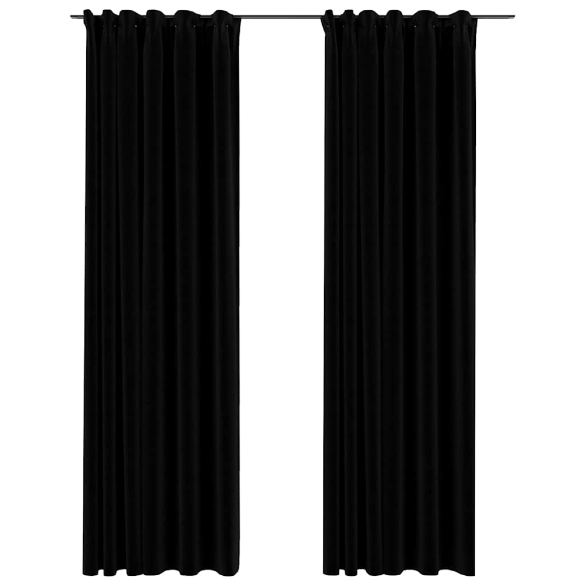 vidaXL Linen-Look Blackout Curtains with Hooks 2 pcs Black 140x225 cm