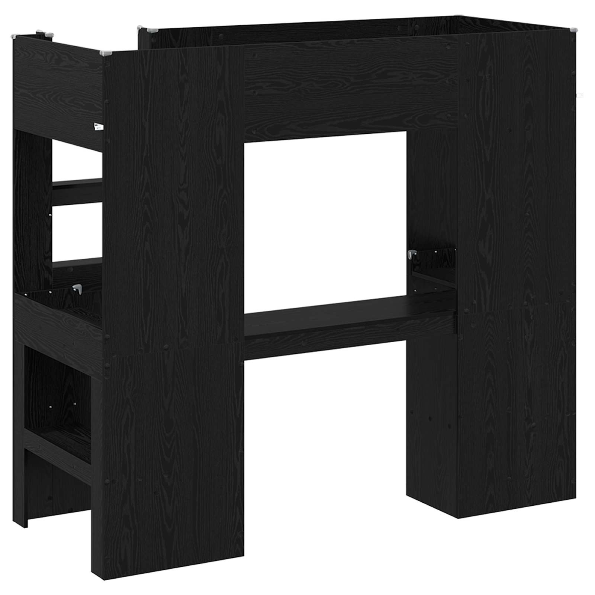 The Modern Loft Bed Frame with Desk is an ideal space-saving solution that combines functionality and contemporary style for any bedroom setting. This single bed frame offers a sleek appearance with its clean lines and minimal ornamentation. Perfect for students or small rooms, it features a desk for studying or work, seamlessly integrating sleeping and productivity zones in one compact unit. Materials: This bed frame is made from engineered wood, specifically chosen for its robust nature and smooth finish, providing both aesthetic appeal and functionality. Engineered wood contributes to the stability and strength of the frame, ensuring it meets the everyday demands of a busy household and maintains its quality throughout years of use. Included Components: Featuring a functional desk and shelves, this loft bed frame is designed to provide dedicated space for studying or work. The desk can accommodate a laptop, books, and other study materials, while the shelves offer additional storage for personal items, providing a tidy and organized area in any bedroom. Practical Design: The bed includes slats for mattress support and a safety guardrail to ensure a secure sleep environment. Its modern design, characterized by simplicity and minimalism, fits well in rooms with similar decor. The easy-climbing ladder makes access to the upper bed safe and convenient for everyday use. Recommended Uses: Ideal for small bedrooms, dorm rooms, or teen spaces where maximizing space is essential. It serves not only as a sleeping area but also as a study zone, making it suitable for students or anyone with limited space. Care &Maintenance: For optimal maintenance, it is recommended to wipe the frame with a dry cloth to remove dust. Regular checking of screws and fittings helps ensure the frame's integrity over time, contributing to the longevity of its use.