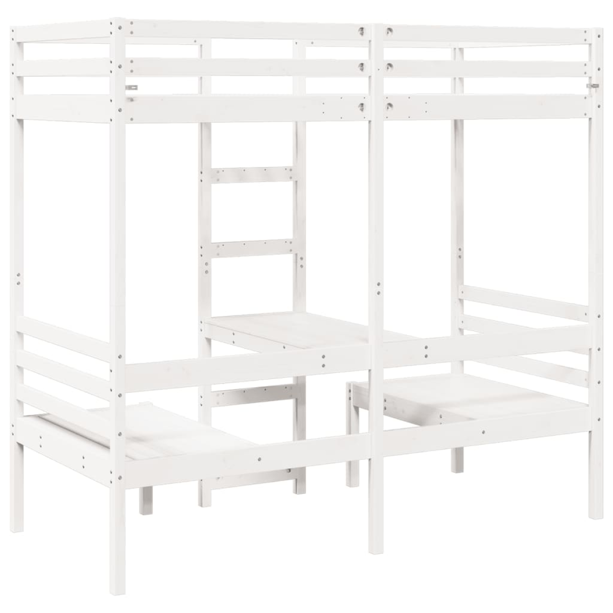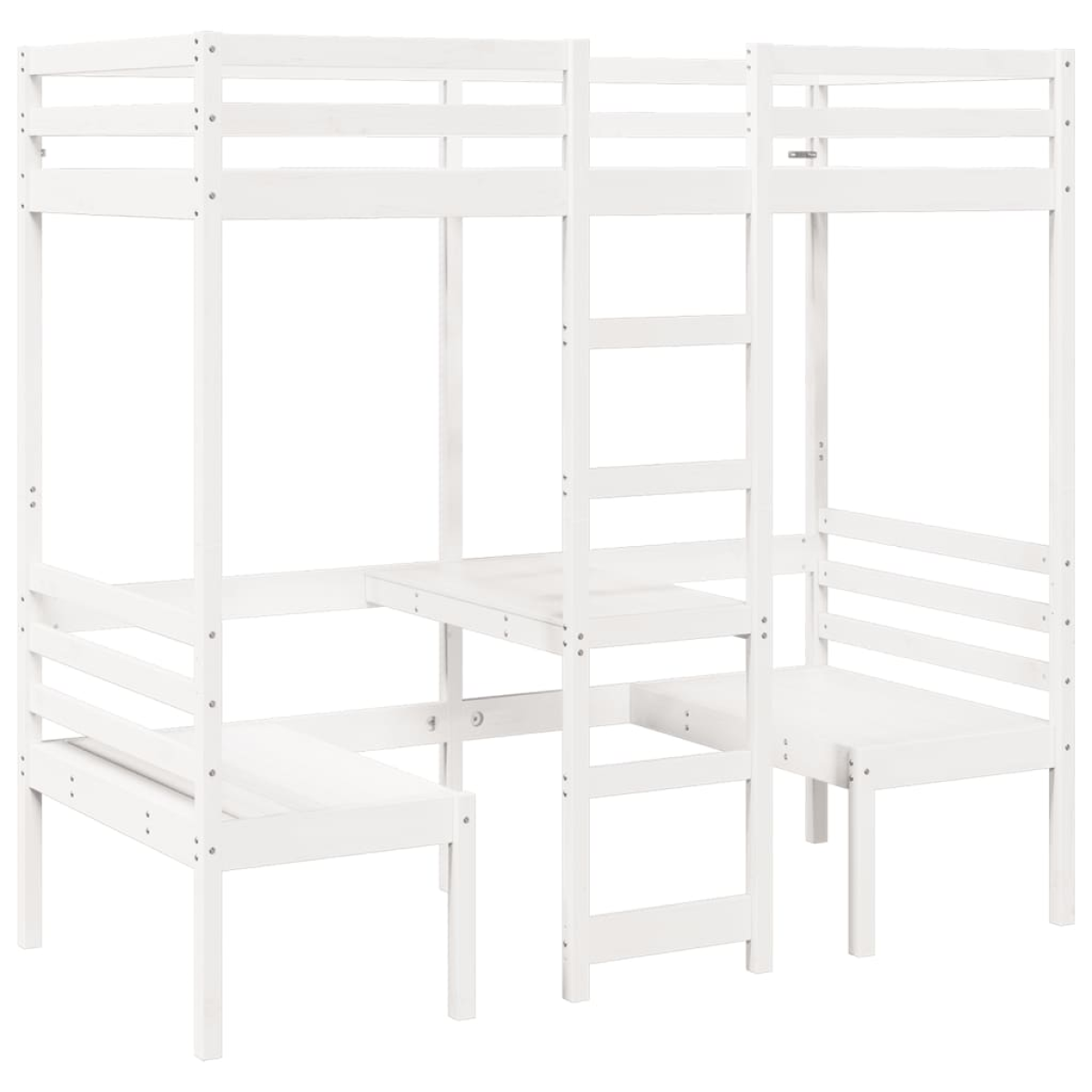 This versatile loft bed integrates a single bed with a desk and chairs, providing a cosy sleeping space, and a spacious work area. It is an ideal choice for homes with limited space.Stable and long-lasting frame: Solid pinewood is known for its strength and durability. Its straight grains and distinctive knots contribute to its rustic charm.Maximise space utilisation: This bed frame features a desk and two chairs underneath, effectively utilising the under-bed space to provide a cosy space for working and studying. It is an ideal choice for smaller or more confined areas.Easy to climb up and down: This bed frame features a built-in ladder, providing convenient access for users to climb up and down.Guardrails for enhanced safety: This bed frame is equipped with guardrails to prevent you from falling out of bed while sleeping.Slatted base for optimal support: The bed frame is equipped with a slatted base for support and breathability for your mattress.Warning:To prevent it from tipping over, this product must be used with the provided wall attachment device.Good to know:A mattress is not included with this bed. We do offer a various selection of mattresses. You can check our shop for a matching mattress.Screws and plugs for inside the wall are not included. We advise to find and use screws and plugs suitable specifically for your walls. If you're not sure, you can consult with a professional. Please read and follow each step of the instructions.