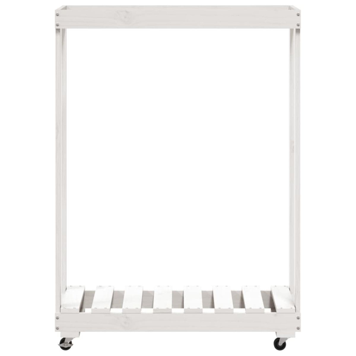 vidaXL Log Holder with Wheels White 76.5x40x108 cm Solid Wood Pine
