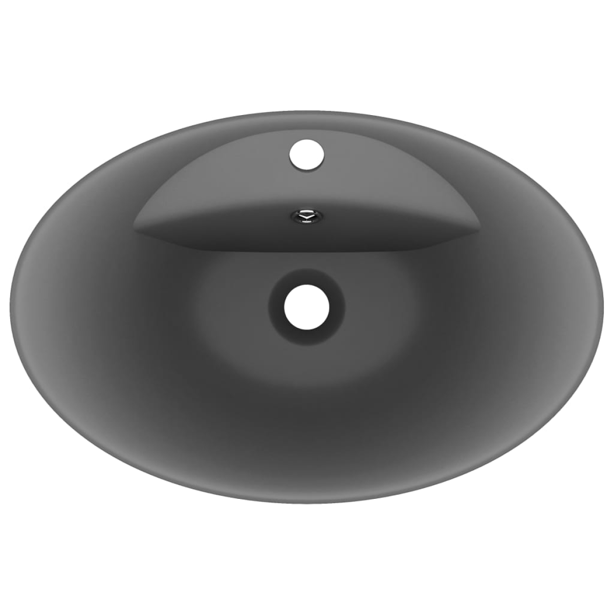 vidaXL Luxury Basin Overflow Oval Matt Dark Grey 58.5x39 cm Ceramic