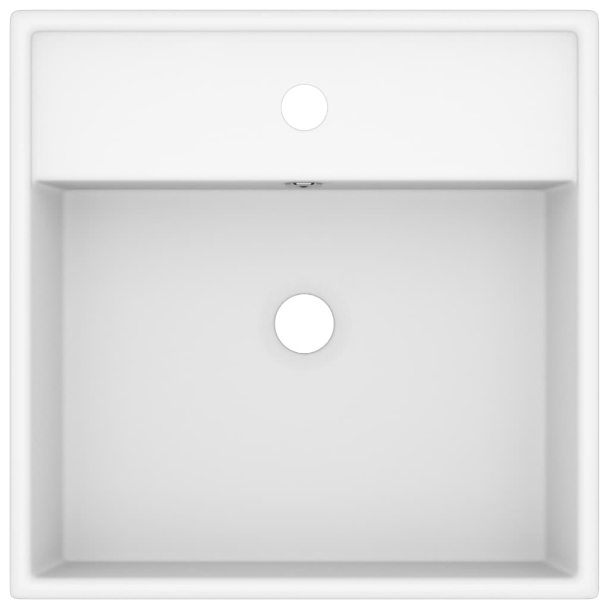 Our square washbasin, made of premium ceramic, is a stylish addition to any bathroom, washroom or powder room. Its matt surface and luxury design bring a modern yet elegant look. This artistic ceramic basin is more than just a practical vessel for everyday use. It is an adornment for your living space! This matt basin can be placed on top of the bathroom console and also in the bathroom, cosmetic room, garage, kitchen or workplace. It definitely suits any interior style. An overflow is equipped to flow water out when it gets too full. A 3.5 cm faucet hole is included to install a tap. The drain hole is 4.5 cm in diameter. Please note: The drain pipe is not included in the delivery. If you want to wall mount this basin, it needs a pair of brackets to support installation. Please note that these brackets are not included in the delivery.