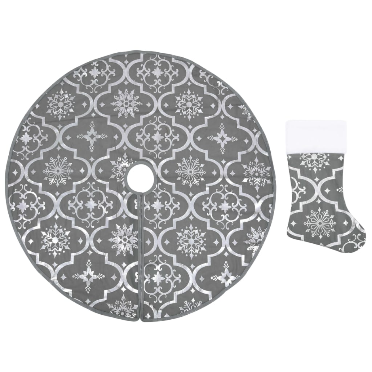 vidaXL Luxury Christmas Tree Skirt with Sock Grey 150 cm Fabric