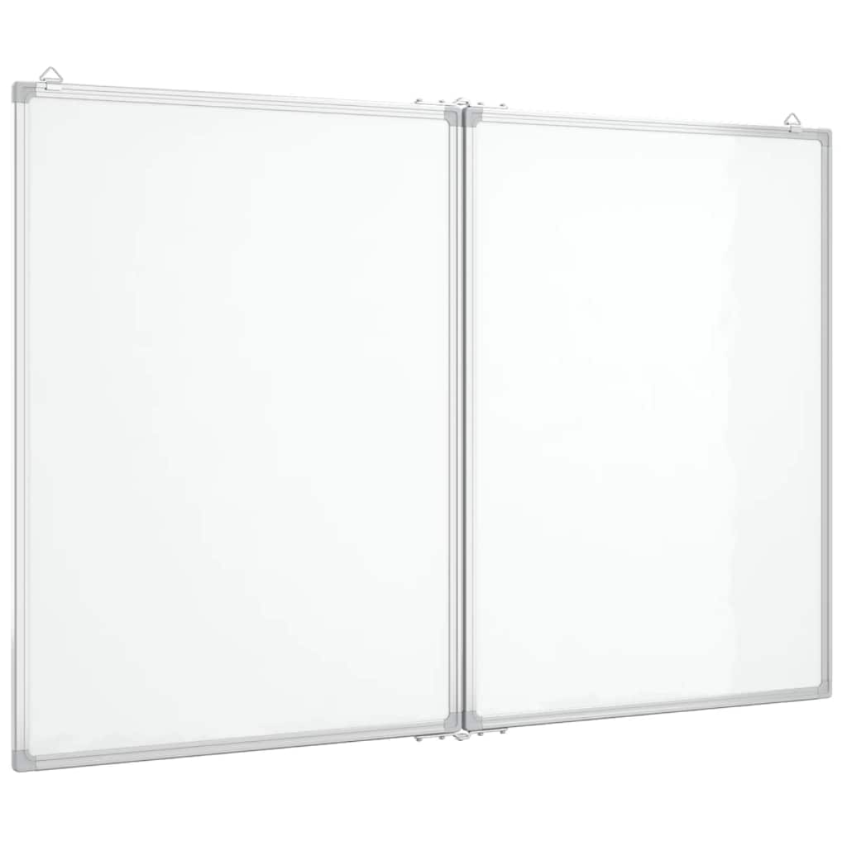 This foldable magnetic whiteboard is an ideal solution for creating a place in your home or office to write notes, doodle, or display photos. Smooth surface: The magnetic whiteboard has a lacquer-coated, smooth surface, which is easy to write on and clean. Additionally, you can attach files, photos, and other elements with magnets.Easy to install: The magnetic whiteboard comes with 2 movable hooks that you can adjust for your needs and quickly install on any wall in your desired location.Foldable: The magnetic whiteboard comprises two hinged panels that provide more writing space and can be angled and folded for your needs.Safety: The magnetic whiteboard features a sturdy aluminium frame and a metal rear panel, complete with protective covers at all four corners to ensure user safety.Multiple applications: The magnetic whiteboard serves as a versatile tool for presentations and memos. It is suitable for schools, conference rooms, offices, and homes.