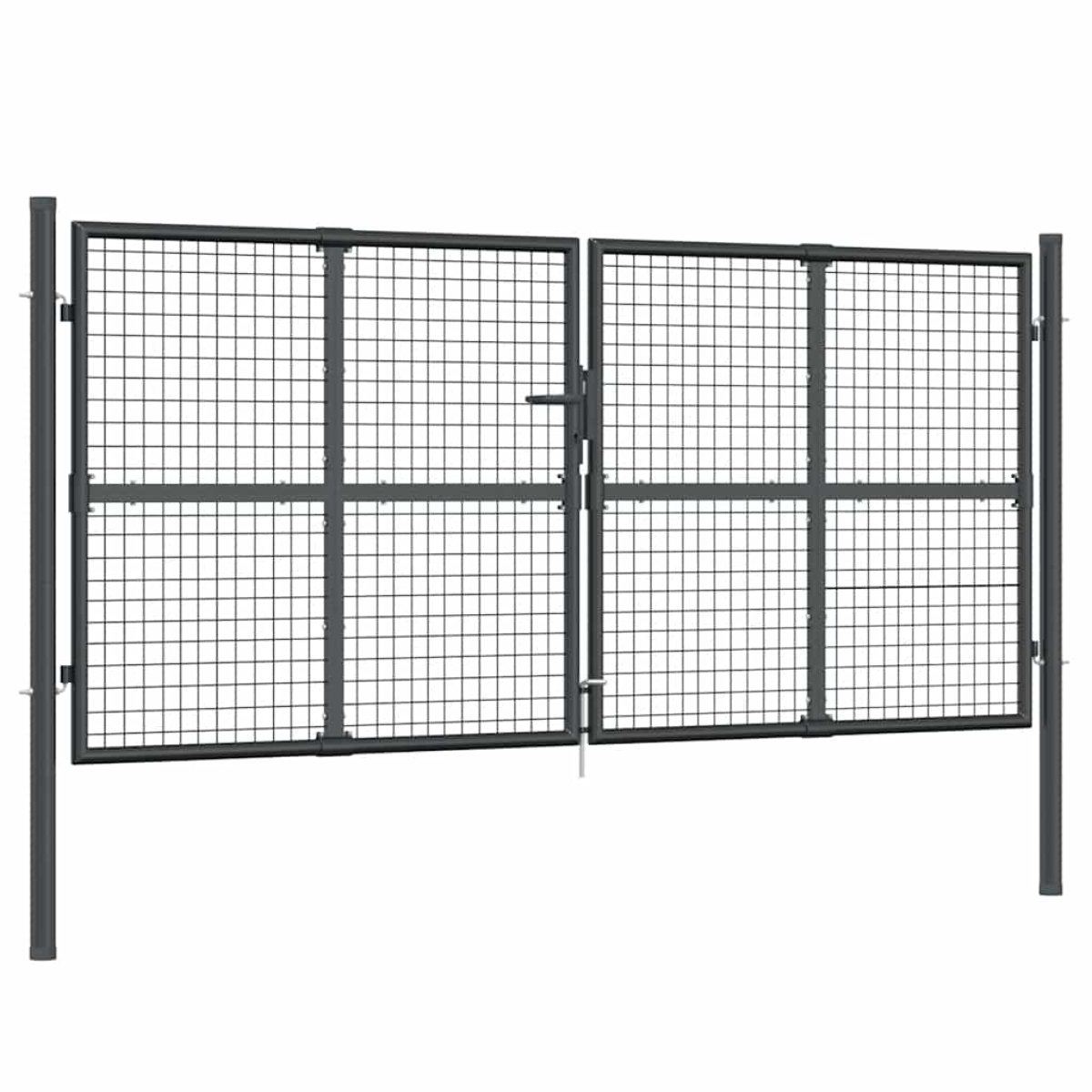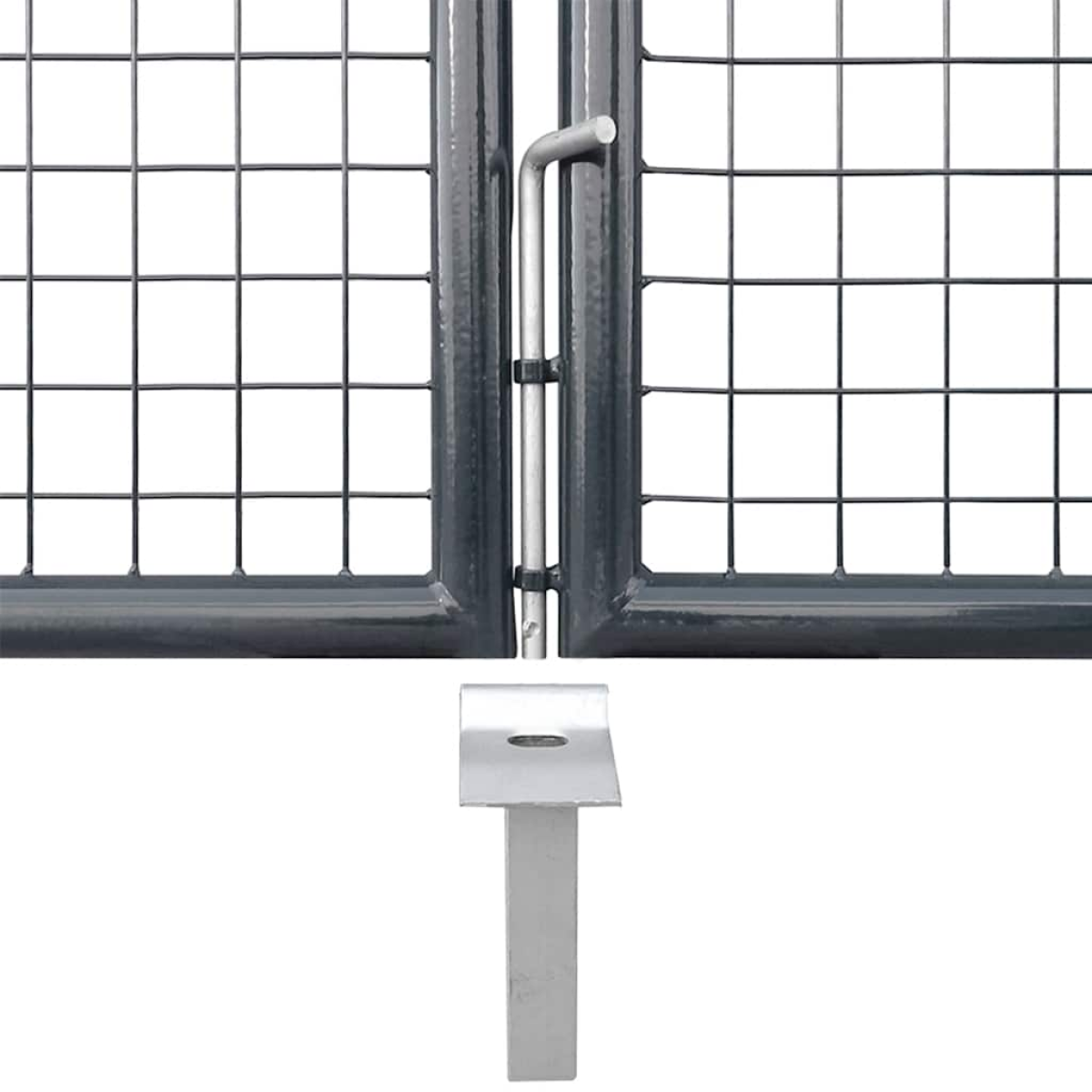 The garden gate is a great combination of strength, stability and corrosion resistance! It will surely be an ideal entry point for your garden, patio, or terrace! Durable material: Steel is an exceptionally hard and strong material. It offers sturdiness and stability. Galvanisation provides better protection against corrosion and is useful for products that'll be used outdoors as well as in harsh environments.Lockable design: The outdoor gate has a ground stake for the large bottom bolt, which ensures the patio gate can be locked well.Easy assembling: The steel garden gate has two side posts with bolt hinges for easy installation.