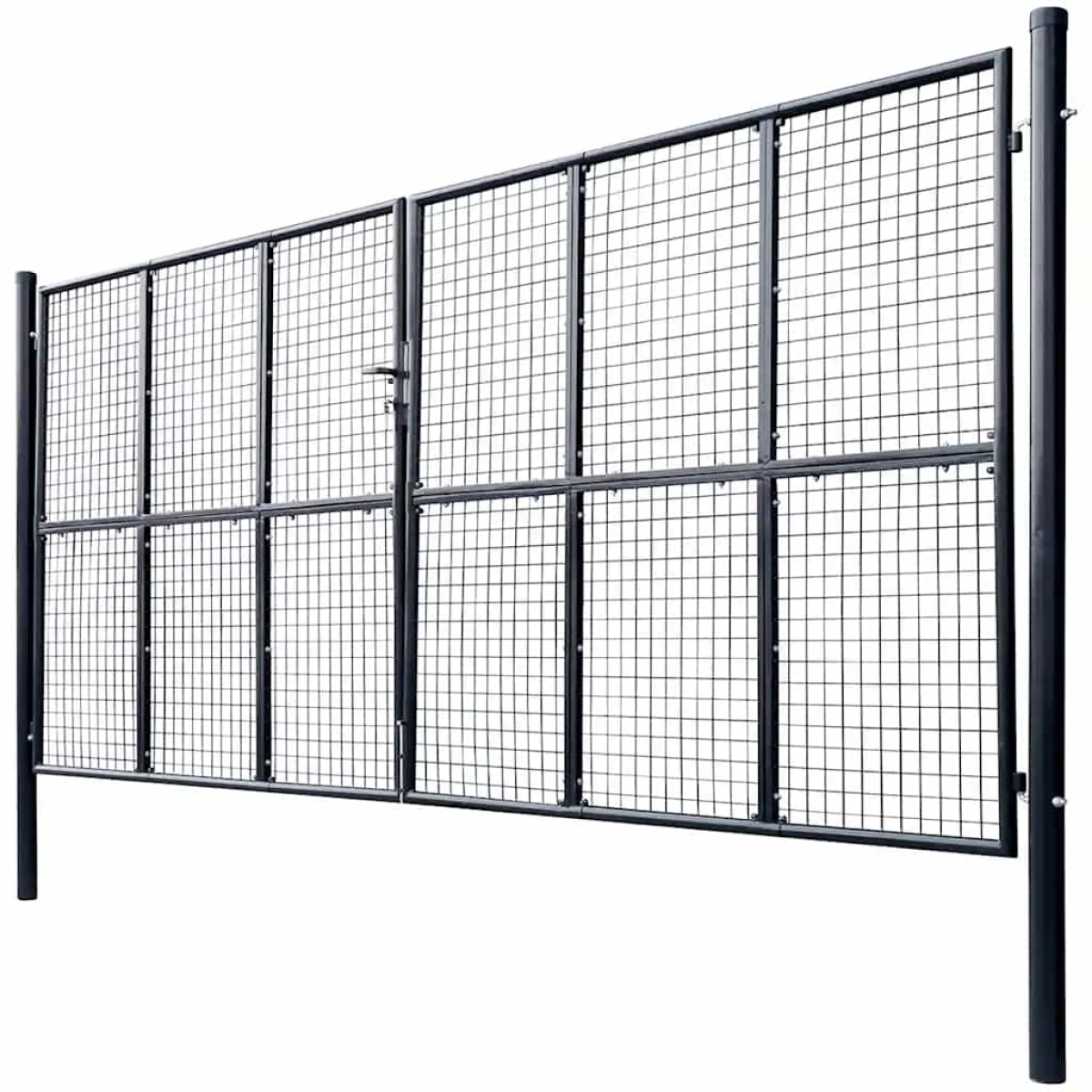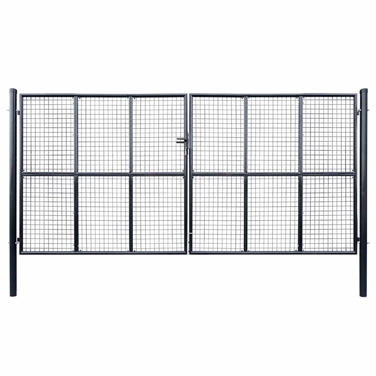 Solid and elegant anthracite grey garden gate, perfect for securing and enhancing the entrance to your garden, terrace, or patio.Robust construction: Made from galvanized steel with a powder-coated finish, rust-resistant, ensuring maximum stability and long-lasting durability.Practical design: The 400 x 175 cm gate features side posts and bolt hinges for easy and secure opening and closing.Enhanced security: Comes with a ground spike for the bottom bolt and three keys, allowing for effective locking of the gate.Optimal dimensions: Measuring 415 x 225 cm overall, with a post diameter of 78 mm, this gate fits perfectly in your entrance while providing comfortable access.Easy installation: Designed for simple and quick setup, this gate combines functionality with modern aesthetics for your outdoor space. Ensure both security and style for your garden with this durable, practical, and elegant garden gate.