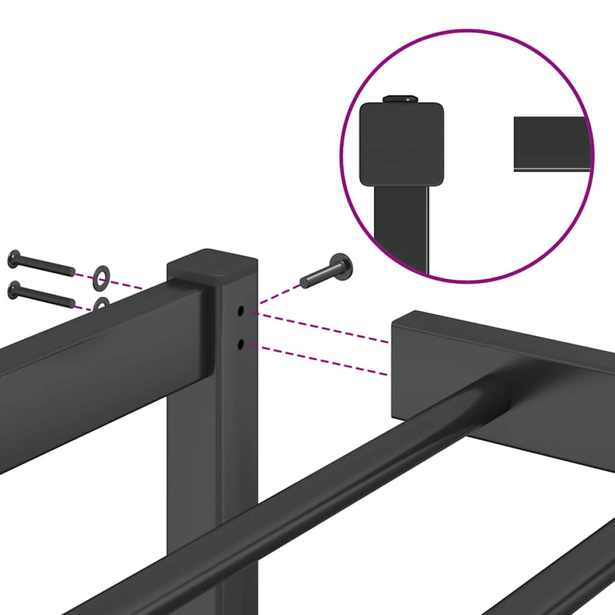 If you are looking for a robust bed frame for your bedroom, then this classic bed frame featuring an elegant and timeless design is the perfect choice for you! Robust metal construction: The bed frame is made from steel. Steel is an exceptionally hard and strong material that offers exceptional sturdiness and stability.Metal slats and legs: The metal bed frame is complete with metal slats and centre legs to provide your mattress with much-needed support and breathability.Extra storage space: For your convenience, the guest bed also has an extra space underneath for keeping your storage boxes out of sight. Good to know:A mattress is not included with this bed. We do offer a various selection of mattresses. You can check our shop for a matching mattress.The beds with square tubes are only suitable for headboards with square tubes; you can check our shop for a matching headboard.