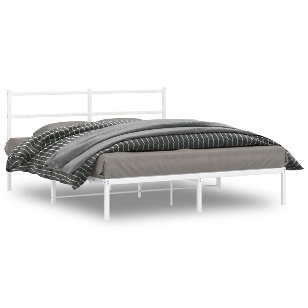 vidaXL Metal Bed Frame without Mattress with Headboard White 160x200cm