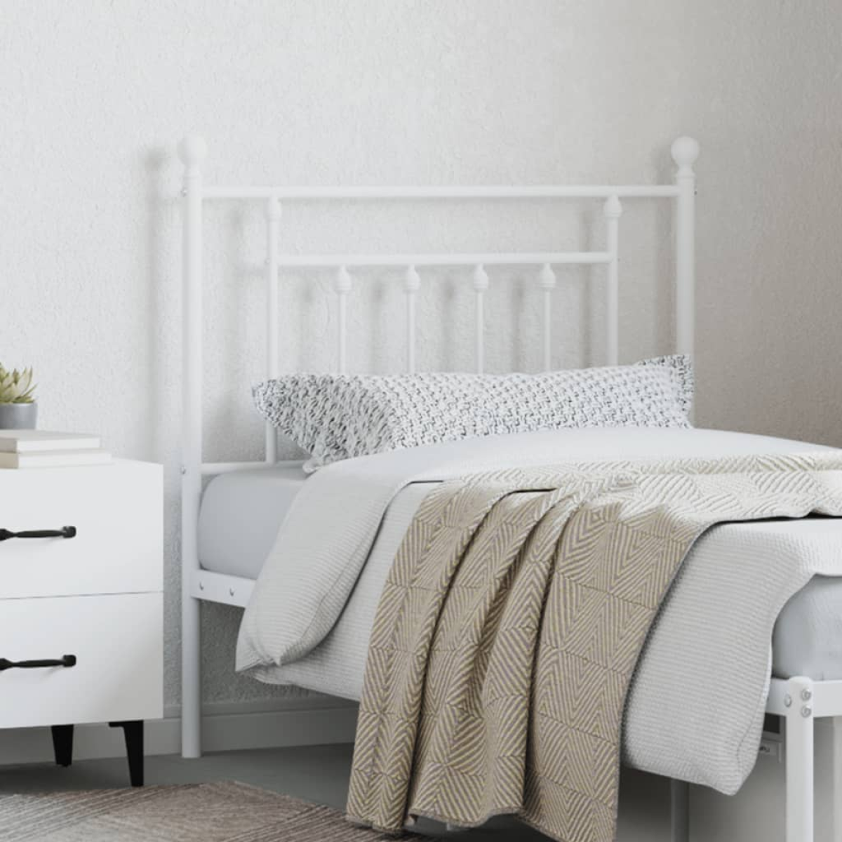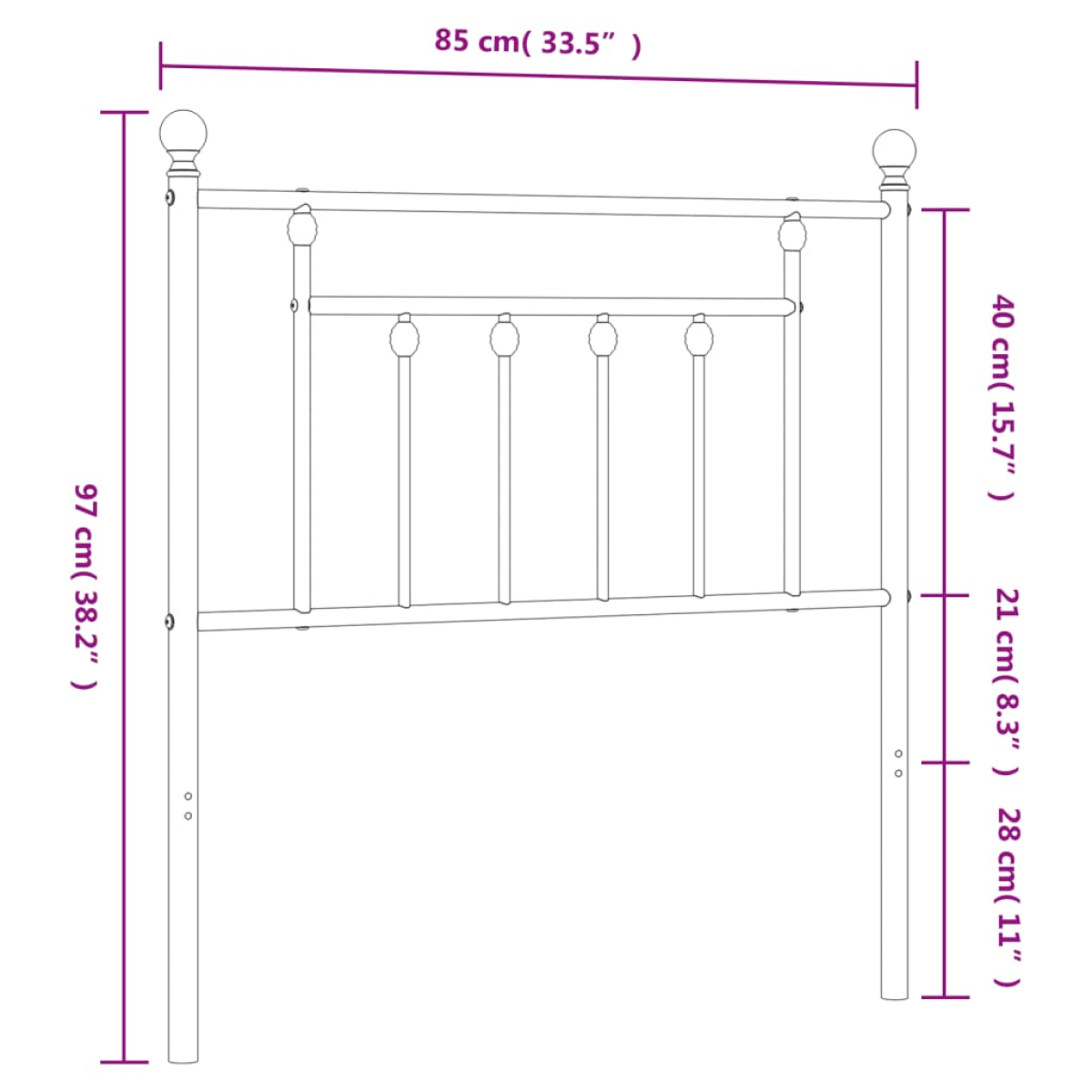 Featuring a stylish design, this classic headboard gives your bed frame a complete look and suits any bedroom. Robust metal construction: The bed header is made from powder-coated steel. Steel is an exceptionally hard and strong material and offers exceptional sturdiness and stability. The powder coating on steel creates a protective layer against wear and tear.Sturdy and stable legs: The metal legs ensure sturdiness and stability.Excellent support: The bed headboard provides you with excellent back support when you sit up in bed to read or watch TV. Good to know:The bed frame and mattress are not included in the delivery. Note:The headboards with round tubes are only suitable for beds with round tubes from our shop.