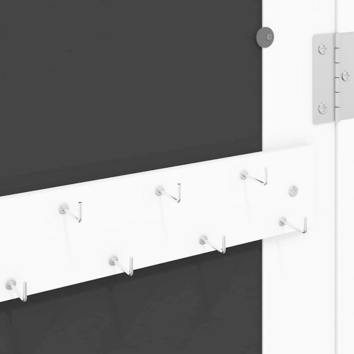 Keep your jewellery and perfumes discreetly and elegantly stored away with this stylish mirror jewellery cabinet! Durable material: The engineered wood is of exceptional quality with smooth surface and also features strength, stability and resistance to moisture. Made of engineered wood, the jewellery cabinet is easy to clean with a damp cloth. Ample storage space: The storage mirror offers plenty of hooks, hangers and shelves to keep your jewellery neatly organised and within reach.Practical mirror: With a practical mirror, this jewellery organiser is great for getting ready and applying make-up.Considerate protection: The jewellery storage has a lockable door and comes with 2 keys to ensure the safety of your items. Also, the soft fabric cover inside not only adds elegance but also protects your beloved jewellery from scratches.Space-saving design: Hang the mirror jewellery box over the door with the included hooks or mount it on the wall to save floor space. Good to know:Screws for wall mounting are included.