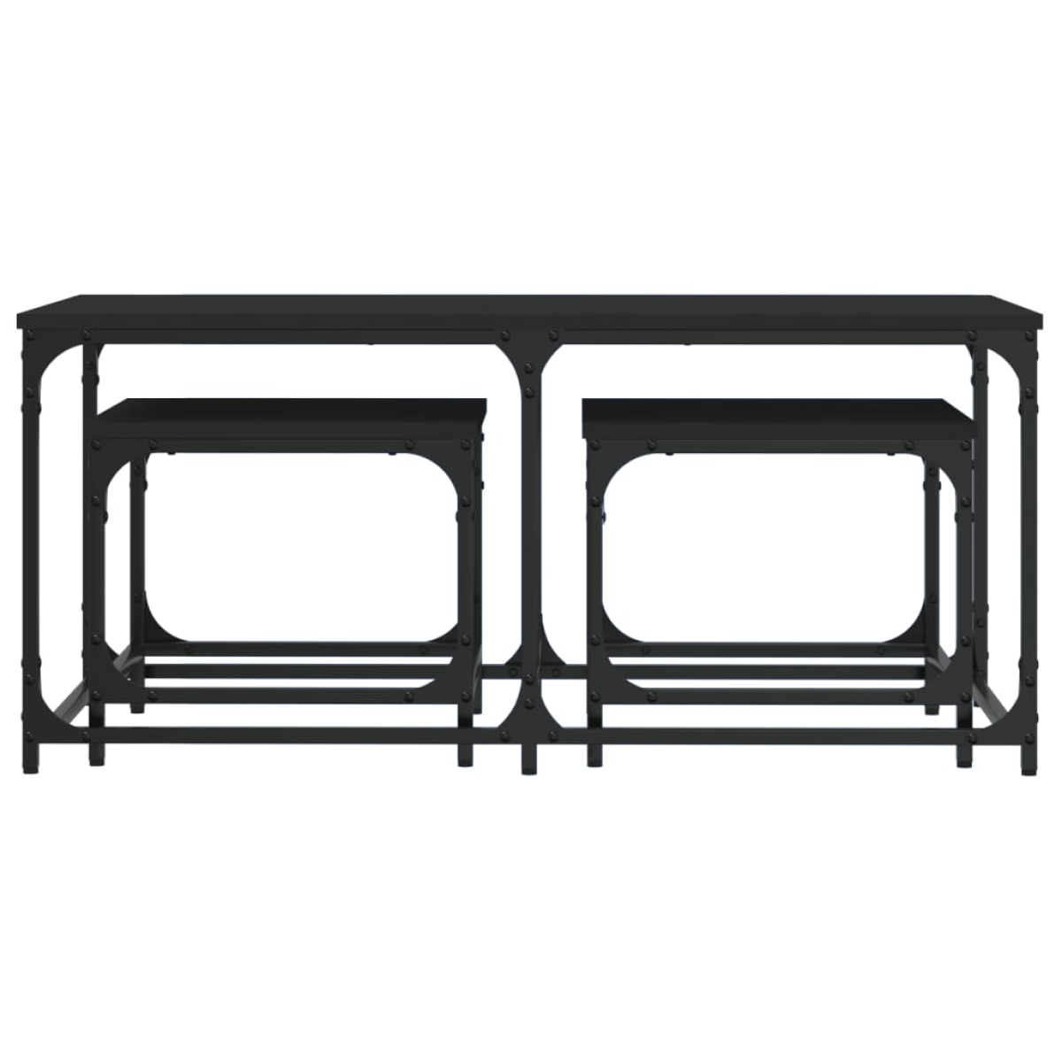 The 3 nesting coffee tables are the perfect alternative for small flats or any area with limited space. Its industrial design makes this coffee table set a chic addition to your living room, bedroom or office. Durable material: The nesting tables are made of engineered wood which is of exceptional quality with a smooth surface and features strength, stability and resistance to moisture.Nesting design: The nest of tables have different sizes to meet your different requirements. The smaller tables can nest inside the larger coffee table if you need more room. And you can arrange them separately for maximum tabletop space.Versatile function: The nesting side tables are versatile! Any one of them can be used as a nightstand in the bedroom, a side table or a couch table in the living room and office.Sturdy top: The sturdy tabletop of the nesting stands is ideal for placing your drinks or any other necessities you need close at hand.