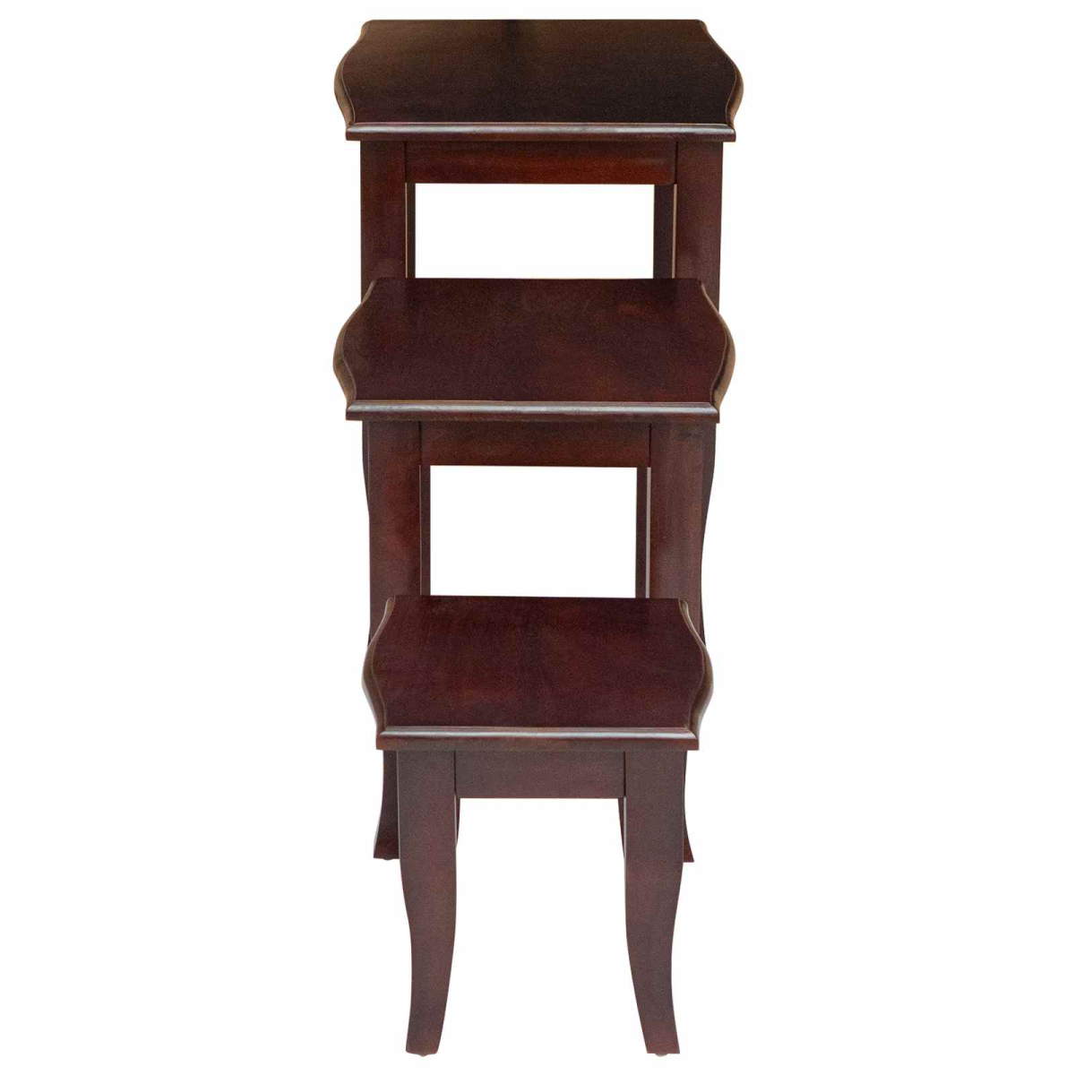 This beautifully crafted set of Classic Nesting Side Tables exemplifies both functionality and aesthetics. Designed to be a timeless addition to your home, they offer versatility in compact spaces such as living rooms or bedrooms. Each table nests neatly beneath the larger one, making them ideal for areas where space is at a premium. With a classic design, they enhance the look of your home by offering elegant yet understated beauty. The rich mahogany wood gives them a warm and inviting appearance that fits seamlessly into traditional and contemporary interiors alike. Their functionality lies in being perfect for hosting beverages, displaying decorative items, or serving as impromptu desk spaces. Solid Mahogany Craftsmanship This set of nesting tables is constructed using premium solid mahogany wood, renowned for its strength and attractive grain patterns. The careful crafting ensures they offer a durable solution for everyday use while maintaining an aesthetically pleasing appearance. Functional Design As part of a space-saving design, these tables slide beneath each other, allowing flexibility and adaptability. They can be used together for larger gatherings or separately in different rooms when space is a constraint. This feature optimizes utility while maintaining elegance. Easy Maintenance The tables boast a surface that resists everyday wear while being simple to clean. A regular dusting with a soft, dry cloth ensures longevity, and the surface's resistance to cleaning chemicals makes routine maintenance hassle-free. No Assembly Required Simply unpack and position these tables in your space without concern for additional tools or steps. The design prioritizes practicality, allowing immediate use upon delivery. Timeless Appeal With an enduring classic style, these nesting tables blend seamlessly with various décor themes. Whether placed in a sophisticated living room or a cozy bedroom, they offer a classically refined touch that enhances any environment.