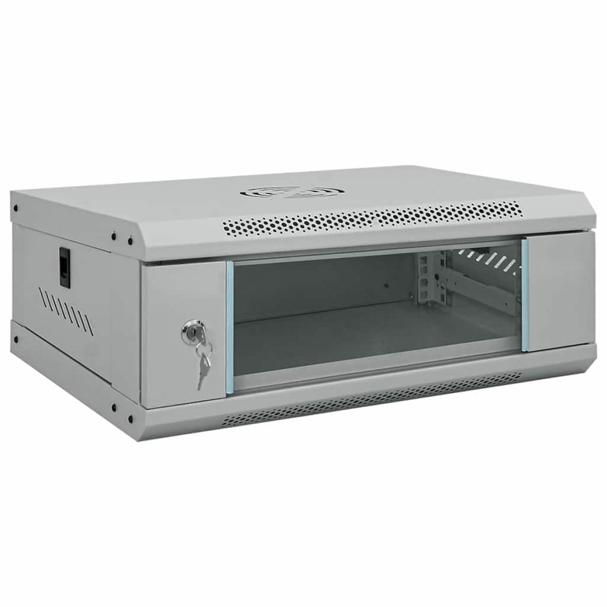 This wall-mounted network cabinet offers a secure and efficient solution for organizing and protecting your electronic components. With its industrial-inspired aesthetics, this cabinet is the perfect addition to modern offices and urban living spaces, combining a rugged look with practical functionality. Its robust steel and tempered glass construction not only presents a sleek, smooth surface but also a heat-resistant and secure storage solution, making it ideal for safeguarding sensitive equipment while seamlessly integrating into your workspace's decor. Durable Materials Featuring a primary steel construction, this network cabinet provides outstanding durability and heat resistance, making it ideal for protecting sensitive electronics. Its tempered glass panels offer a modern touch, allowing you to visually monitor internal equipment with ease while maintaining a strong, reliable structure. Practical Components Equipped with latch handles made from strong steel, this cabinet combines functionality with security. The sleek silver color of the handles complements the industrial design, further enhancing the cabinet's overall aesthetic. The secure locking mechanism adds an extra layer of protection for your valuable equipment. Sleek Design The industrial design, inspired by urban lofts and warehouses, features raw materials and a smooth texture, seamlessly blending into both office and living room settings. The visually appealing design ensures that the cabinet is not only a practical storage solution but also a stylish addition that enhances any room it occupies. Indoor Versatility This cabinet is exclusively designed for indoor use, making it an ideal addition to offices, server rooms, or other technology hubs within a home or professional environment. It enhances organization and efficiency by providing a compact, wall-mounted storage space tailored for network components. Simple Maintenance Easy care instructions ensure minimal upkeep is required. Simply wipe the cabinet with a damp cloth to maintain its sleek appearance and hygienic condition. This straightforward maintenance approach promotes longevity and consistent functionality across various environments.