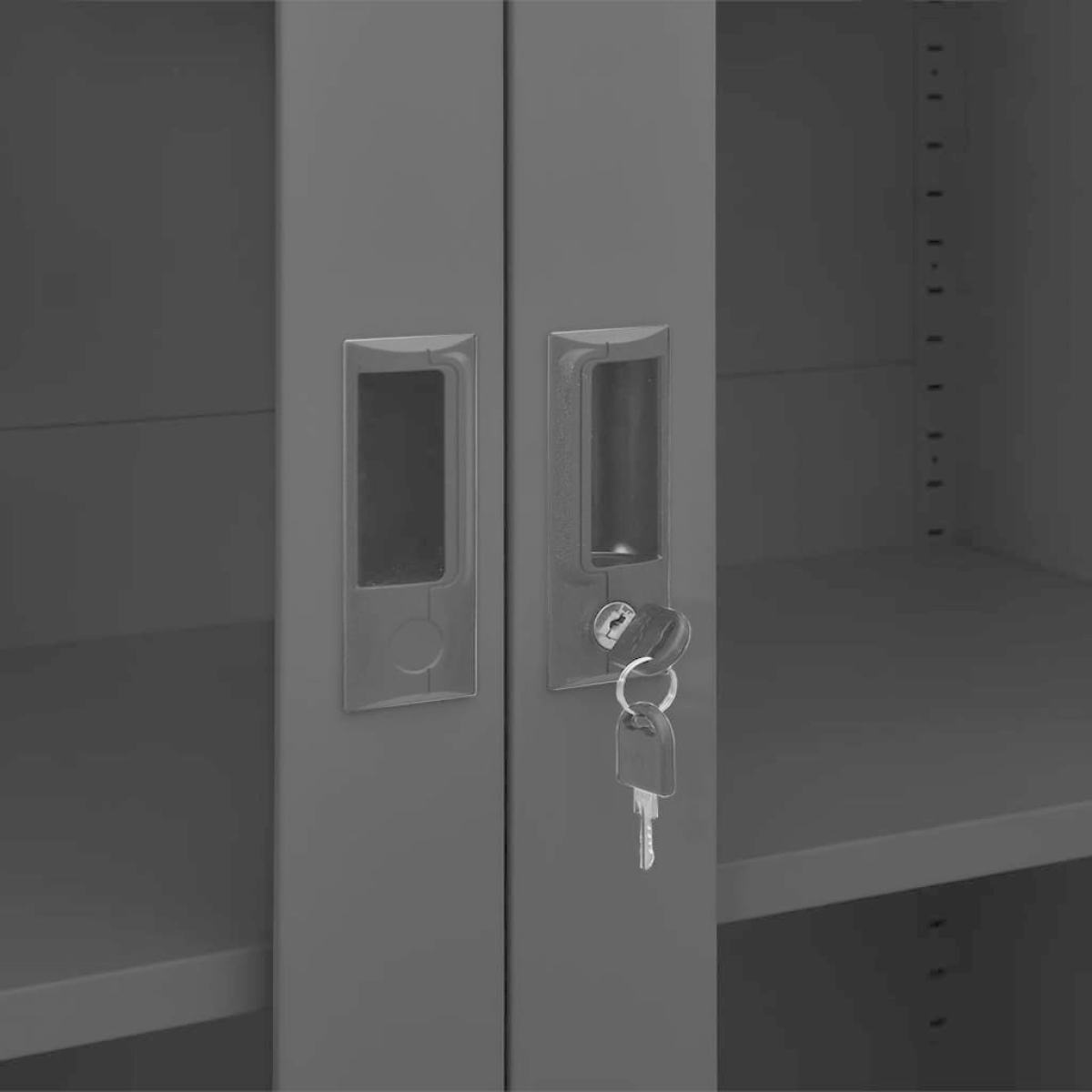 This office cabinet, with a typical filing cabinet design, is ideal for file storage. With 5 adjustable shelves and 2 locks, this file cabinet allows you to neatly sort your files into different categories and keep files safe. It will suit any office decor thanks to its iconic design. And the distinctive tempered glass doors make it easy for you to see through and get the file you want. This office cabinet is made of steel, making it durable as well as easy to clean.This office cabinet, with a typical filing cabinet design, is ideal for file storage. With 3 adjustable shelves and 2 locks, this file cabinet allows you to neatly sort your files into different categories and keep files safe. It will suit any office decor thanks to its iconic design. And the distinctive tempered glass doors make it easy for you to see through and get the file you want. This office cabinet is made of steel, making it durable as well as easy to clean.