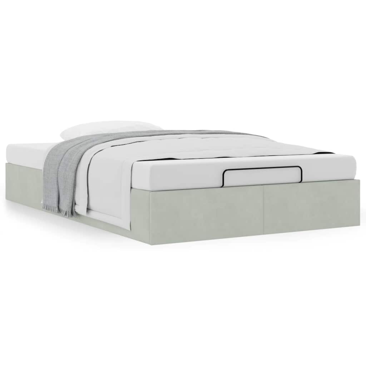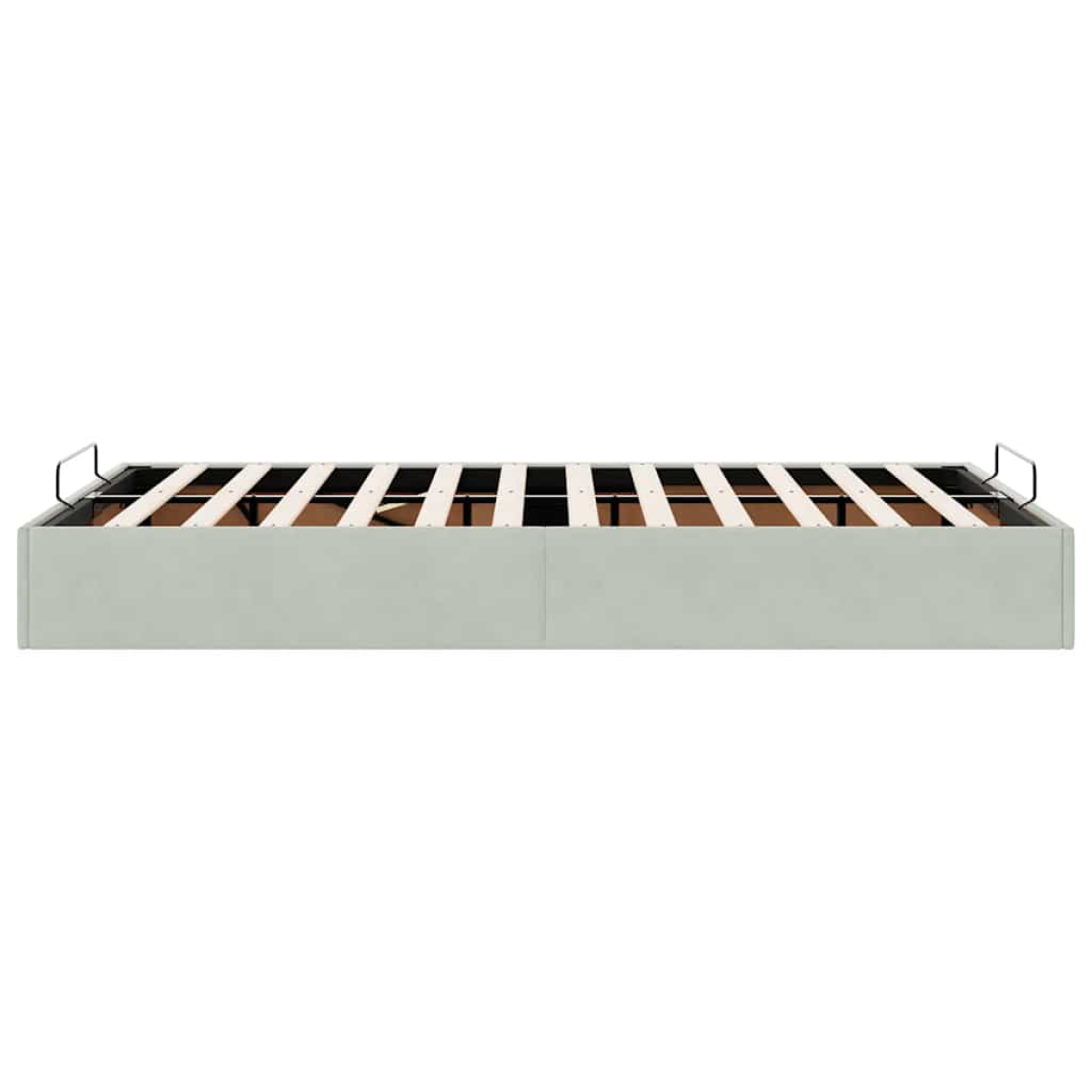 This ottoman bed frame seamlessly blends modern aesthetics with practical functionality, offering you both a storage solution and a comfortable sleep experience. Soft and comfortable material: Velvet fabric features a soft and smooth surface that delivers a delightful sensation against the skin, bringing you warmth and ultimate comfort.Ample under-bed storage: This bed frame features spacious storage underneath, maximising your space without requiring additional floor area. It provides ample room for storing items such as extra duvets, pillows, and seasonal clothing, making it ideal for smaller or more confined spaces.Convenient lift mechanism: The integrated hydraulic lift mechanism provides easy access to your belongings stored under the bed. With just a simple pull of the handle, the slat base lifts smoothly, allowing you to retrieve your items quickly and effortlessly.No box spring required: The bed frame includes a slatted base that provides excellent support and breathability for your mattress, eliminating the need for a box spring. Good to know:A mattress is not included with this bed. We do offer a various selection of mattresses. You can check our shop for a matching mattress.