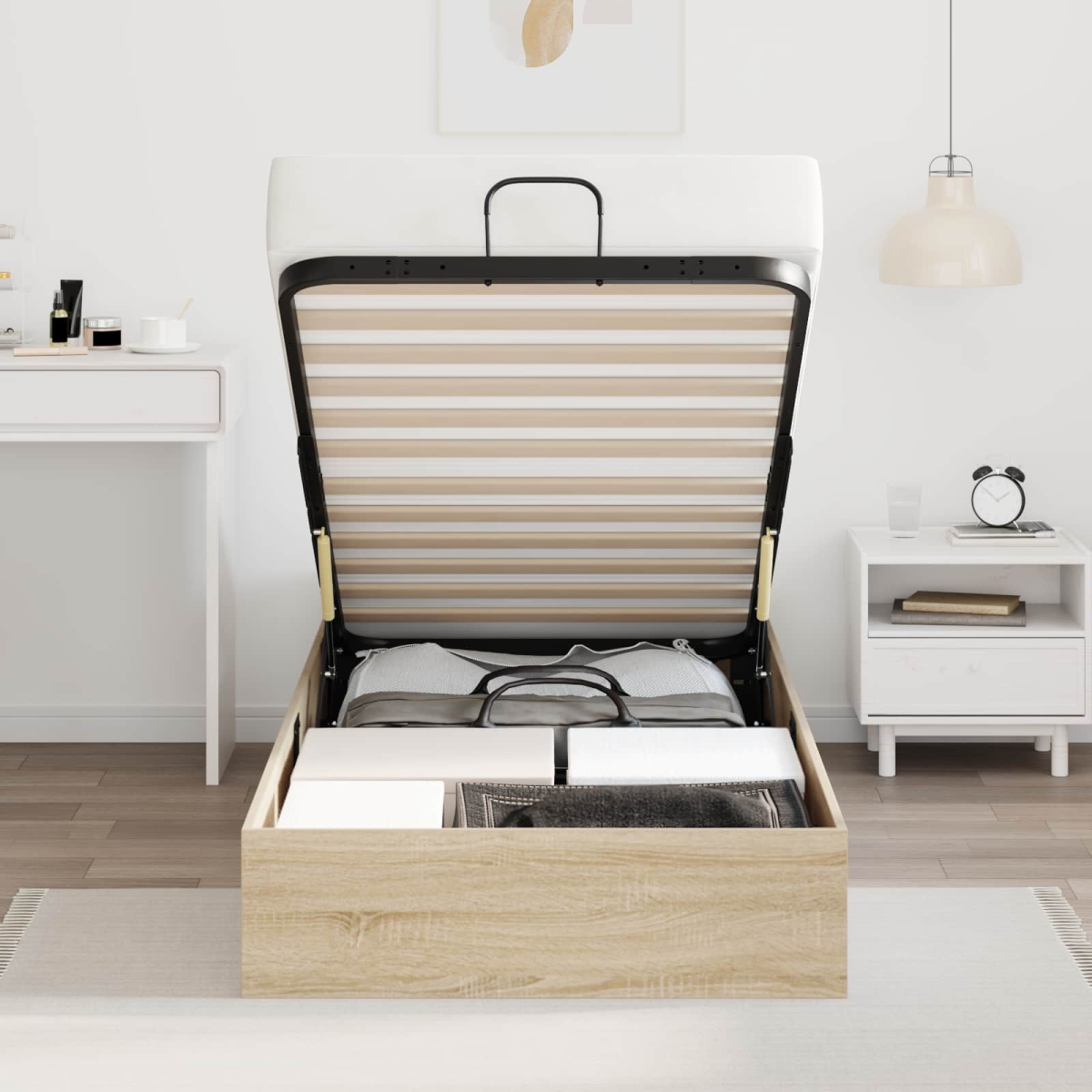 vidaXL Ottoman Bed Frame Sonoma Oak 203 x 90 x 25 cm Chipboard