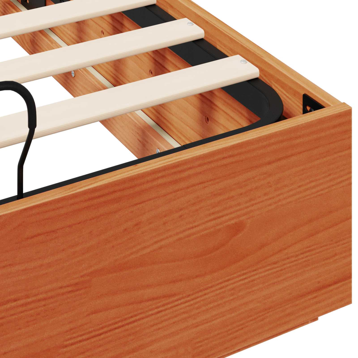 This Ottoman Bed Frame with Storage is an elegant space-saver designed for modern bedrooms. Its sleek, rectangular silhouette crafted from solid pine wood offers a sturdy yet refined look that beautifully complements any interior. The contemporary design makes it ideal for a variety of décor styles, while maintaining practicality by providing generous storage solutions. Perfect for individuals seeking both form and function, this bed seamlessly adapts to busy lifestyles by organizing space efficiently and enhancing bedroom aesthetics. Solid Pine Wood Construction: The frame is expertly crafted from solid pine wood, ensuring exceptional strength and longevity. The natural grain pattern adds a sophisticated touch, blending seamlessly with both traditional and modern bedroom settings. The material not only offers remarkable robustness but also low maintenance needs, making it an excellent choice for daily use. Hydraulic Lift System: Featuring a hydraulic gas lift mechanism, the bed frame allows easy access to the storage compartment beneath the mattress. This system enables smooth lifting motions while ensuring safe handling, offering convenience and efficient use of bedroom space. Ample Integrated Storage: The ottoman-style frame provides a vast storage compartment, ideal for storing items such as linens, seasonal clothing, or accessories. This feature maximizes bedroom floor space, keeping your room tidy and organized without compromising on style. No Boxspring Needed: Engineered to eliminate the need for an additional boxspring, this frame supports the mattress directly, reducing setup costs and simplifying assembly. This design choice emphasizes streamlined aesthetics and practical benefits to the user. Handles for Effortless Operation: Handles installed on both ends of the bed frame's lift system ensure a firm grip and facilitate easy maneuvering when accessing storage. Practical touches like these enhance the user experience, making the frame a supportive and functional piece of bedroom furniture.