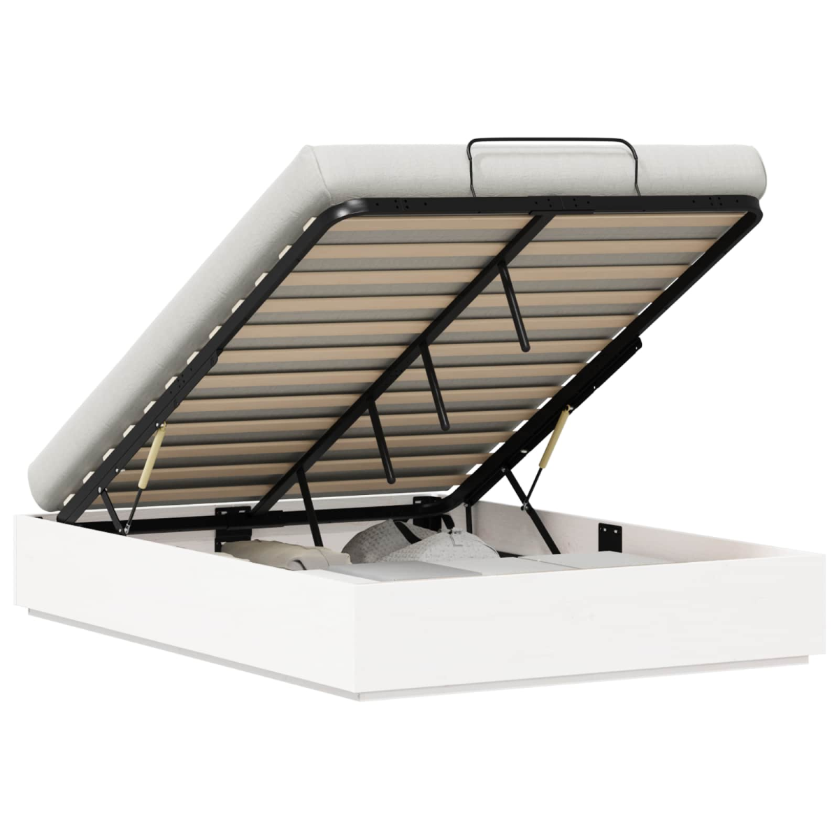 This Ottoman Bed Frame with Storage is an elegant space-saver designed for modern bedrooms. Its sleek, rectangular silhouette crafted from solid pine wood offers a sturdy yet refined look that beautifully complements any interior. The contemporary design makes it ideal for a variety of décor styles, while maintaining practicality by providing generous storage solutions. Perfect for individuals seeking both form and function, this bed seamlessly adapts to busy lifestyles by organizing space efficiently and enhancing bedroom aesthetics. Solid Pine Wood Construction: The frame is expertly crafted from solid pine wood, ensuring exceptional strength and longevity. The natural grain pattern adds a sophisticated touch, blending seamlessly with both traditional and modern bedroom settings. The material not only offers remarkable robustness but also low maintenance needs, making it an excellent choice for daily use. Hydraulic Lift System: Featuring a hydraulic gas lift mechanism, the bed frame allows easy access to the storage compartment beneath the mattress. This system enables smooth lifting motions while ensuring safe handling, offering convenience and efficient use of bedroom space. Ample Integrated Storage: The ottoman-style frame provides a vast storage compartment, ideal for storing items such as linens, seasonal clothing, or accessories. This feature maximizes bedroom floor space, keeping your room tidy and organized without compromising on style. No Boxspring Needed: Engineered to eliminate the need for an additional boxspring, this frame supports the mattress directly, reducing setup costs and simplifying assembly. This design choice emphasizes streamlined aesthetics and practical benefits to the user. Handles for Effortless Operation: Handles installed on both ends of the bed frame's lift system ensure a firm grip and facilitate easy maneuvering when accessing storage. Practical touches like these enhance the user experience, making the frame a supportive and functional piece of bedroom furniture.