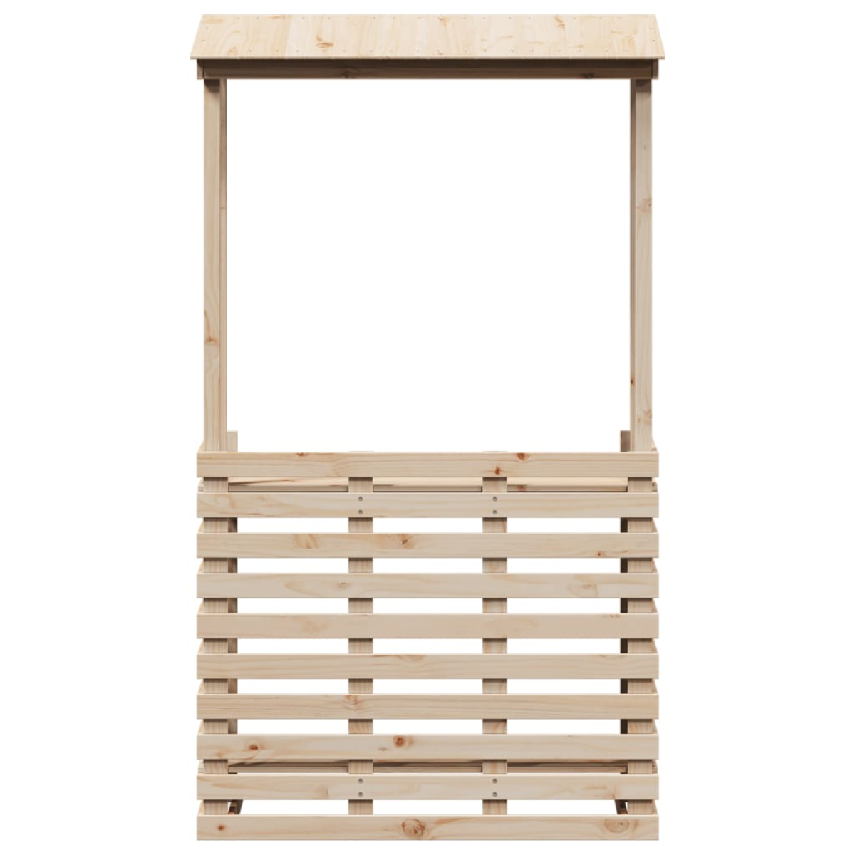 Take a sip of your favourite wine or enjoy a nice meal with your family or friends around this outdoor bar table. Solid pine wood: This outdoor bar table is made of solid pine wood. Solid pine wood is a beautiful natural material. Pine wood has a straight grain, and the knots give the material its signature, rustic look.Practical top: The outdoor pub table is designed with a roof which offers shade and protection from direct sunlight.Storage shelves: The outdoor high table has 2 shelves for keeping food and drinks within easy reach.Wide applications: The garden bar table, with its remarkable design, creates a pleasant overall appearance that integrates effortlessly into any environment. Good to know:To make sure your outdoor furniture stays beautiful, we recommend protecting it with a waterproof cover.