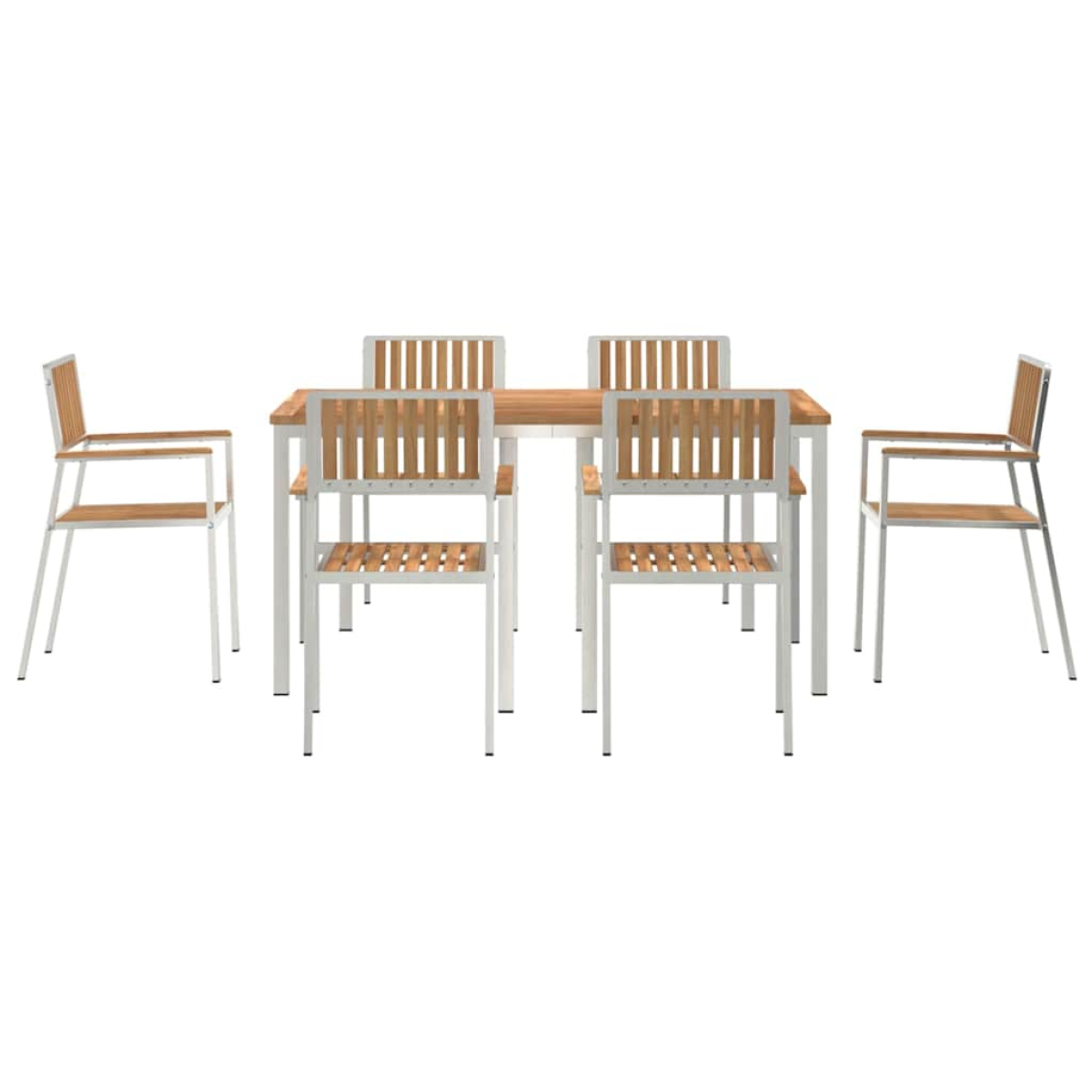 Turn your garden or terrace into a classy outdoor dining area with this Modern Outdoor Dining Set. Perfect for enjoying meals with mates and family, it features a sleek and simple design that looks good thanks to its clean lines and great functionality. Built just for outdoor use, it’s a refreshing spot for casual dinners, lively get-togethers, or peaceful morning coffees. Stainless Steel Construction Built tough with sturdy stainless steel, the legs and frame offer great stability for outdoor use. This strong material not only looks good but stands up to the elements, making it last longer while looking fab. Comfy Component Design This dining set has comfy armrests and backrests in a rich brown colour, designed for a snug fit. They add to the modern style while the silver legs keep it trendy. Functional Features Made for spring and summer, this set uses abrasion-resistant materials so it keeps its looks even with regular use. Perfect for gardens and terraces, it works well in outdoor settings while staying stylish and functional. Outdoor Versatility This design is perfect for different garden or terrace needs. Great for seasonal use, it can handle different weathers, making your outdoors adaptable for any occasion. Easy Maintenance Keep your dining set looking sharp by using a cover when it’s not in use. Just give it a wipe down with a damp cloth to keep it clean, ensuring it stays good-looking and lasts through any weather.
