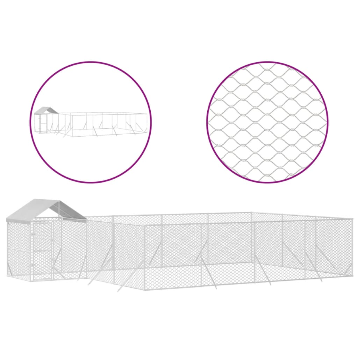 This practical and spacious outdoor dog kennel with roof is a perfect choice as an outdoor enclosure for keeping your animals safe and comfortable. Versatile kennel: The dog kennel features a spacious space that allows your dogs, chickens, rabbits, ducks, and other small animals to play, exercise, train, or just rest.Sturdy construction: Made of heavy-duty galvanised steel, the dog cage is sturdy and durable.Lockable door: The outside dog kennel has a lockable door to prevent your small animals from predators and other hazards while outdoors.Protective roof: Made of polyethylene, the roof is water-resistant and UV-resistant, providing protection from sun, rain, snow, as well as other weather conditions.Mesh design: The mesh design of the dog run kennel ensures a dry and ventilative living condition.