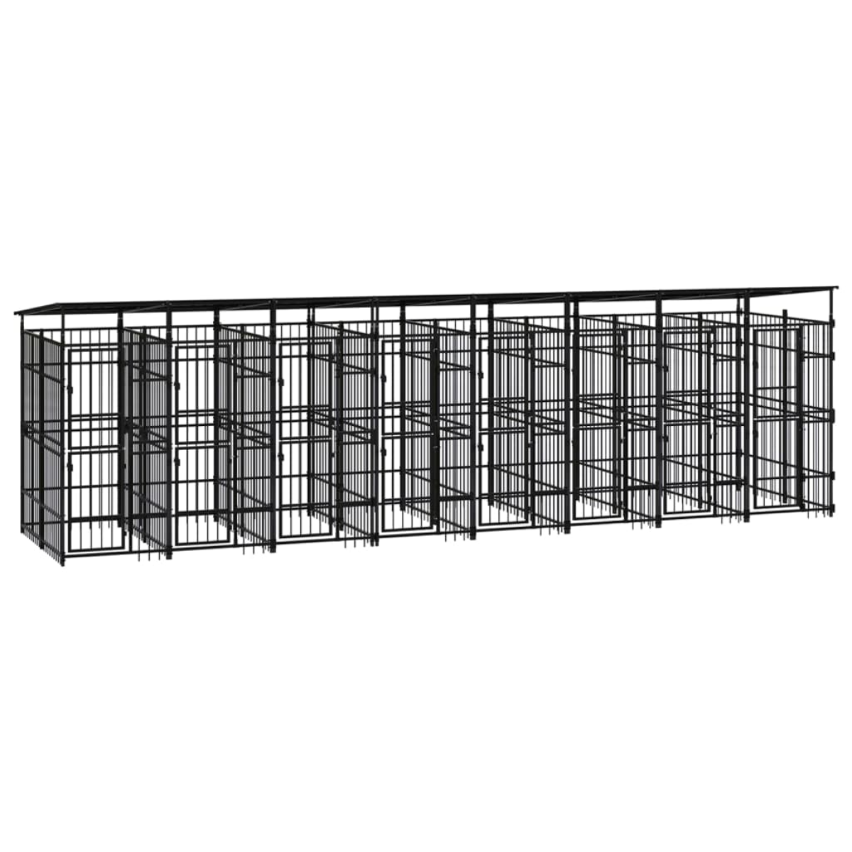 vidaXL Outdoor Dog Kennel with Roof Steel 14.75 m²