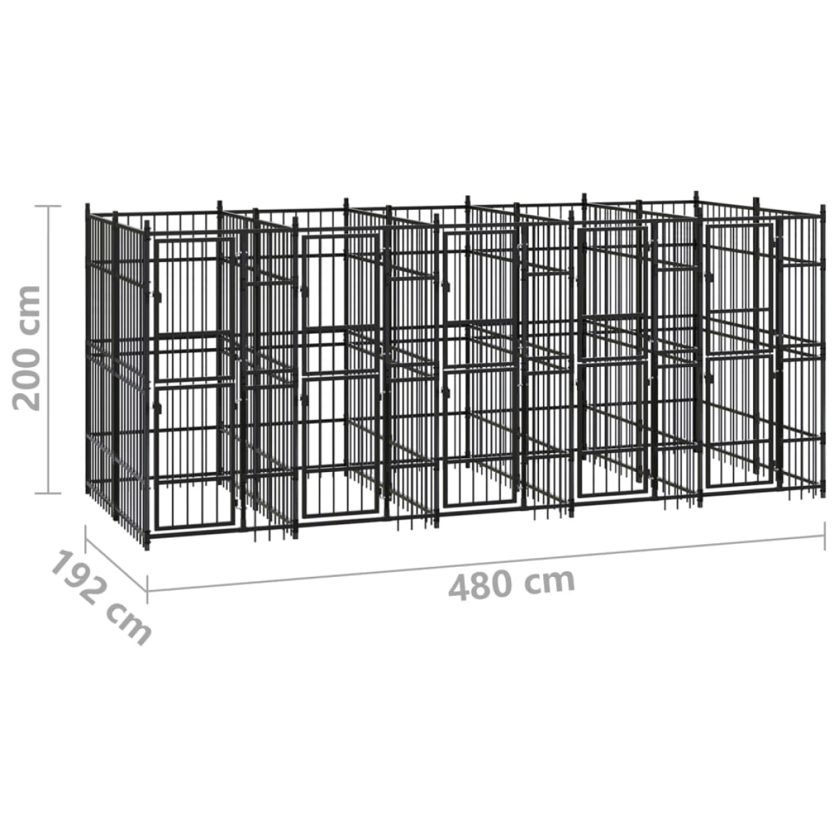vidaXL Outdoor Dog Kennel Steel 9.22 m²