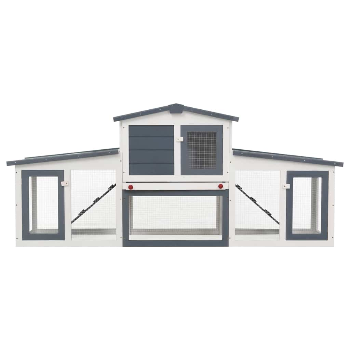 Give your furry friends a comfortable living space with our deluxe wooden hutch! This hutch of 2 layers provides a large cosy place for keeping small animals, especially rabbits. It features multiple uses: playing, exercising, training or simply keeping your pets safely. It is built with solid painted fir wood that is long-lasting and safe for animals. An asphalt roof keeps your furry friends away from outside weather elements. Raised perch keeps your small animals safe, dry and warm, especially on rainy days. Both sides are equipped with the ramp, so your pet can easily enter the raised housing area. Designed for simple maintenance, it contains a removable dropping tray for easy cleaning. The outdoor run with durable fencing wiring ensures sufficient ventilation and keeps pet in and predators out. Lockable doors protect your pets and allow you to easily take them in and out. The hutch is easy to assemble with all necessary hardware included. Important note: We recommend you placing the rabbit cage under shelter. Accordingly, it will last a longer life.