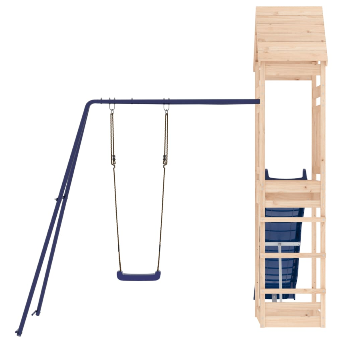 Do you want to give your children the freedom to play at home? This wooden outdoor playset transforms your backyard into a playground for imaginative adventures! Solid pine wood: This garden climbing frame is made of solid pine wood. Solid pine wood is a beautiful natural material. Pine wood has a straight grain, and the knots give the material its signature, rustic look.Sturdy and stable frame: The wooden frame of the playset ensures sturdiness and stability. In addition, the "A" shaped legs of the children's swing allow for balance.Multi-activity centres: The climbing frame features a 90 cm height platform and stands out with its wave slide, a single swing set as well as a sandpit. Your little ones can also invite their friends to join the fun.Thoughtful design: The surrounding wooden railings are designed to ensure the safety of children during their happy play. Also, the wooden roof provides shade for your children on hot summer days.Endless fun: This fun-filled garden playset is the perfect way for your children and their friends to enjoy entertainment, have more interactive time and make memories for you and your children! Warning:Only for domestic useOutdoor useNot suitable for children under 3 yearsRecommend user age: 3-8 years old Good to know:To make assembly as easy as possible, each product is delivered with a manual.