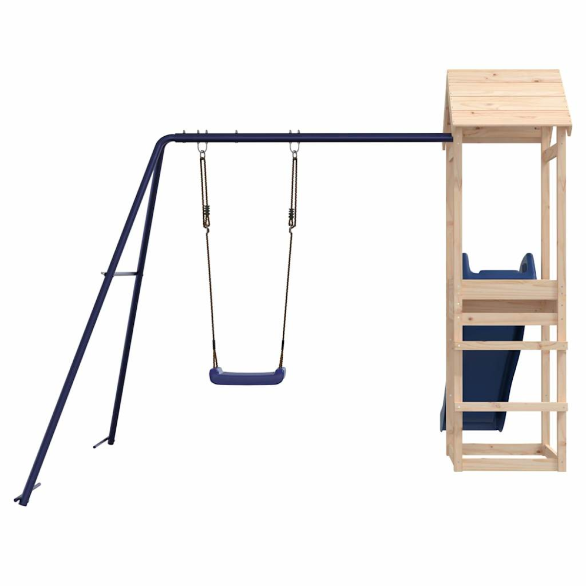 Do you want to give your children the freedom to play at home? This wooden outdoor playset transforms your backyard into a playground for imaginative adventures! Durable material: This climbing frame with slide is made of solid pine wood. Solid pine wood is a beautiful natural material. Pine wood has a straight grain, and the knots give the material its signature, rustic look.Sturdy and stable frame: The wooden frame of the garden climbing frame ensures sturdiness and stability. In addition, the "A" shaped legs of the children's swing allow for balance.Multi-activity centres: The climbing frame features a 90 cm height platform and stands out with its wave slide, a swing set as well as a sandpit. Your little ones can also invite their friends to join the fun. Thoughtful design: The wooden roof provides shade for your children on hot summer days.Endless fun: This fun-filled wooden outdoor playhouse is the perfect way for your children and their friends to enjoy entertainment, have more interactive time and make memories for you and your children! Warning:Only for domestic useOutdoor use Not suitable for children under 3 years Recommend user age: 3-8 years old Good to know:To make assembly as easy as possible, each product is delivered with a manual.