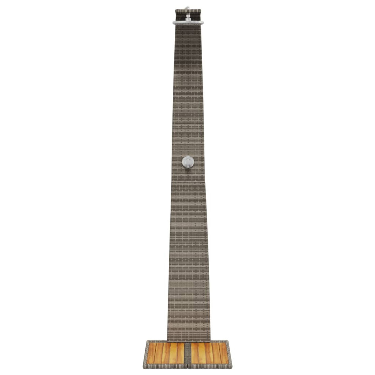 Enjoy a refreshing shower in the open air with this poly rattan outdoor shower. Durable material: PE rattan, also known as poly rattan, is a strong, low-maintenance synthetic material that looks like natural rattan. It's lightweight, easy to clean, and commonly used for outdoor furniture due to its durability and weather-resistant properties. Wooden slatted base: Thanks to the acacia wood base, the outside shower is stable and provides a safe place to stand during the shower. In addition, the slatted base prevents water from pooling and keeps your feet out of the muck. Easy to use: Equipped with a rotatable handle and a top spray at an ideal height, the pool shower is easy to use. And this freestanding outdoor shower can connect to the water hose or outdoor faucet for easy use. Stylish and trendy: With its timeless design, the swimming pool shower exudes a rustic charm and will make an eye-catching addition to your garden or backyard. Robust and stable frame: The powder-coated steel frame ensures that the garden furniture is strong and stable for daily outdoor use. Good to know:The shower must be stored empty and in a dry place safe from frost. To make sure your outdoor furniture stays beautiful, we recommend protecting it with a waterproof cover.